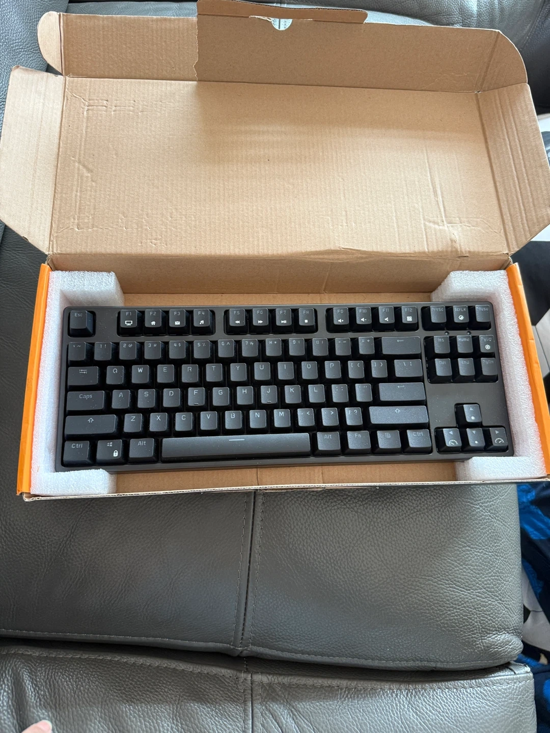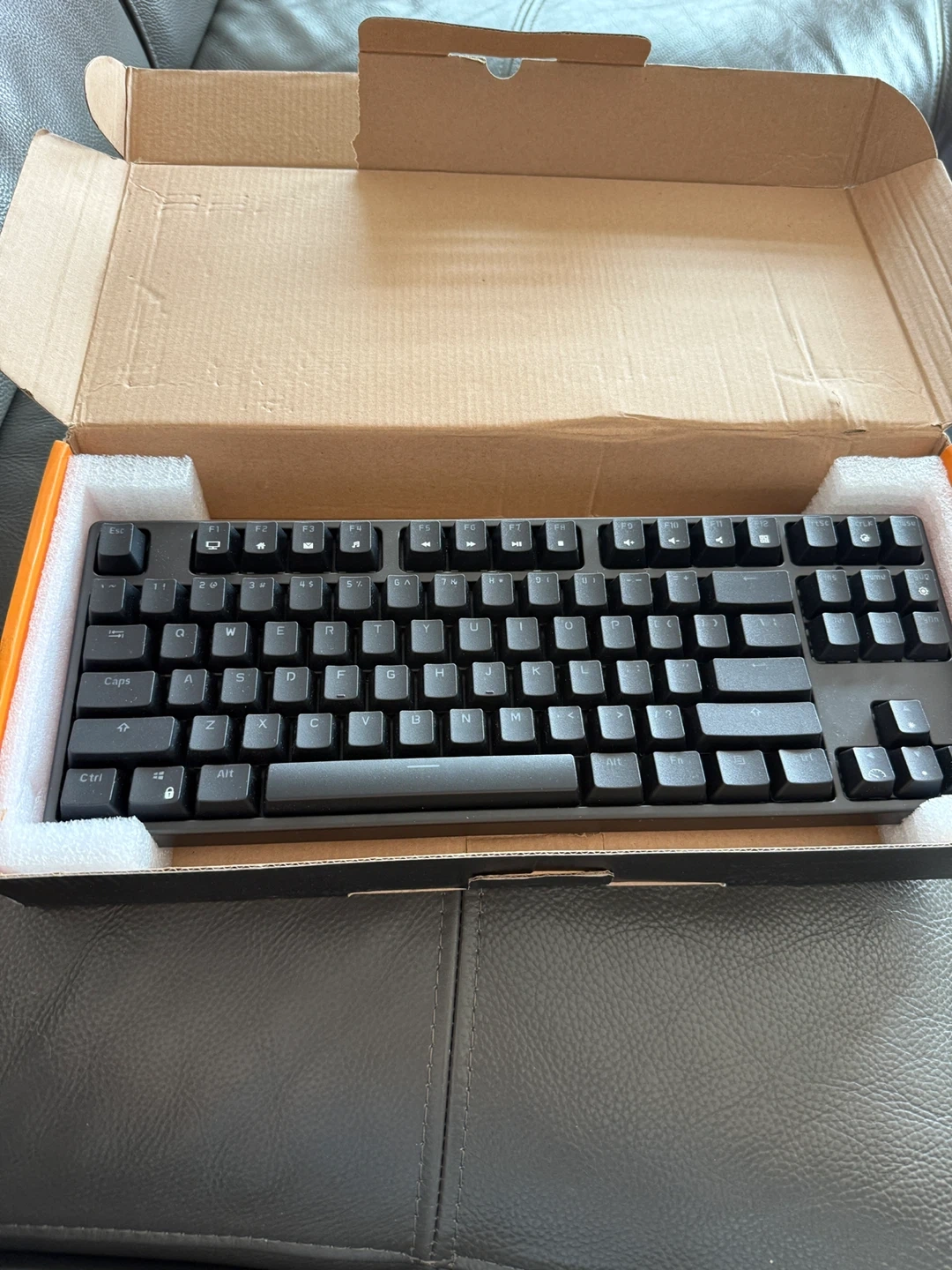 This is a Royal Kludge RK Game Keyboard. It's a black, compact keyboard that comes in its original box. This keyboard is suitable for gaming or everyday computer use.