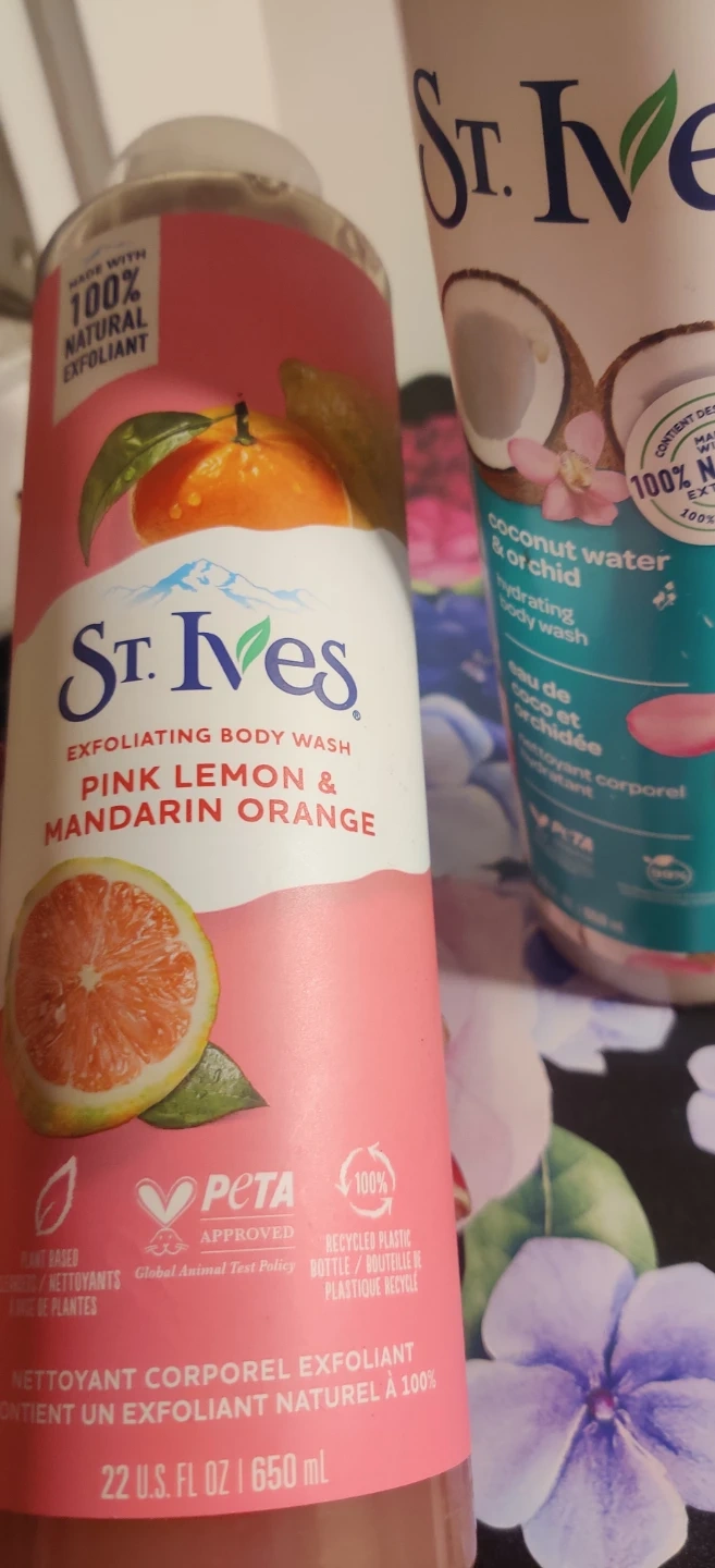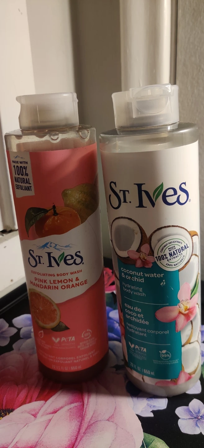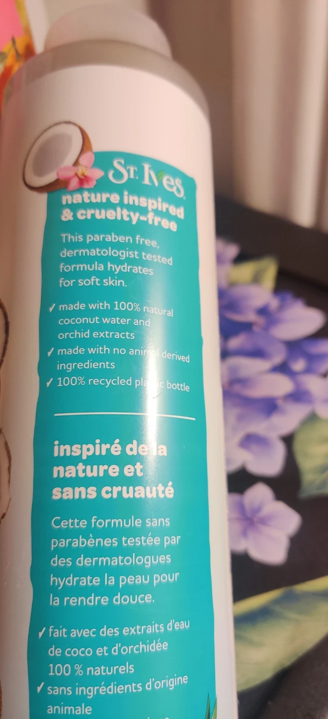 These St. Ives body wash is made with 100% natural coconut water and orchid extracts. It's a hydrating formula that hydrates for soft skin. The bottle is made from 100% recycled plastic. This is a great body wash for daily use to keep your skin feeling soft and refreshed.