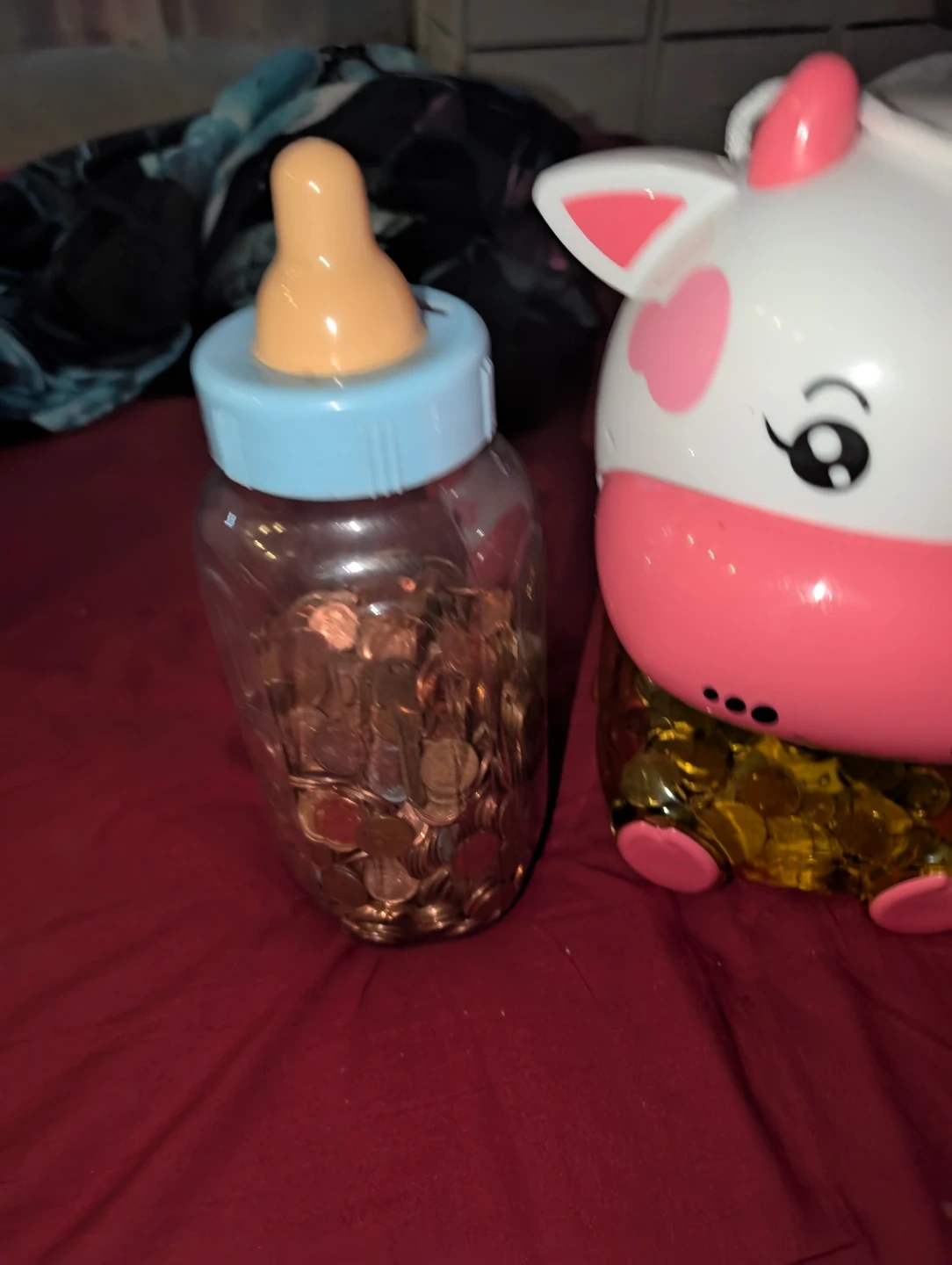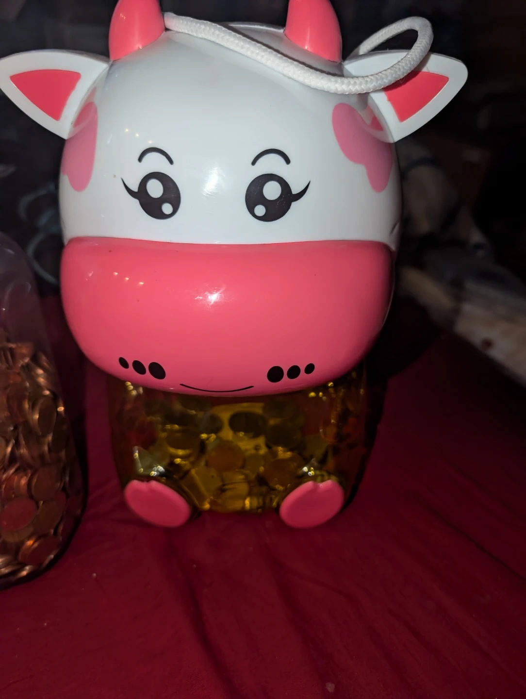 Both for $25 Cow Piggy Bank and Baby Bottle Coin Holder