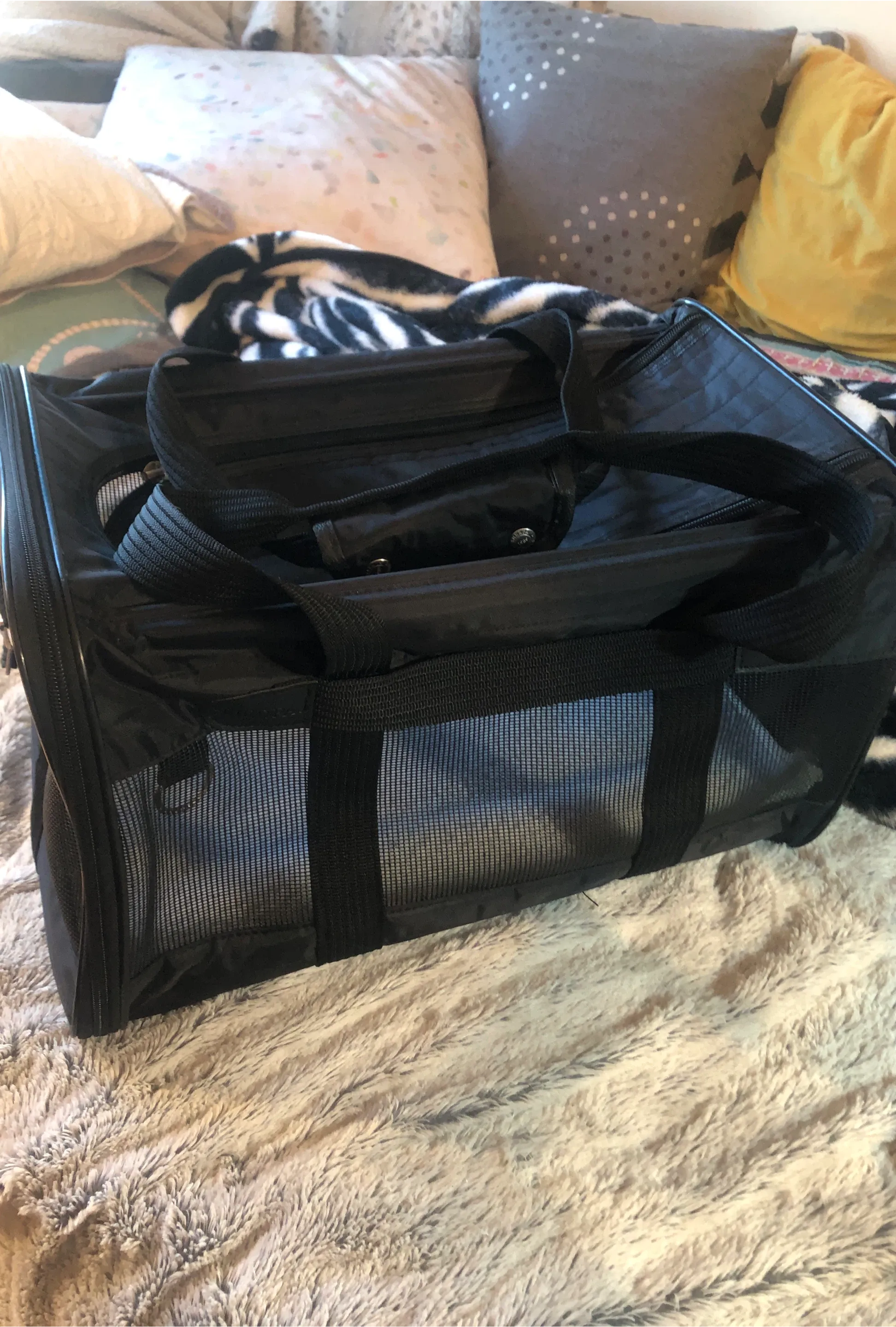 Buy & SellBlack Pet Carrier BagBlack Pet Carrier Bag$14This is a black pet carrier bag. It's made of mesh and fabric for good ventilation. It has sturdy handles for carrying.ConditionNewWHERE TO MEETCheck LocationView MapSELLERSammyParkdale9511 reviews4 chats·4 favorites·30 viewsSEND CHAT TO SELLERHi Sammy! I’m interested in your listing.Hi Sammy! I’m interested in your listing.Get the Karrot app to chatSign In to chat