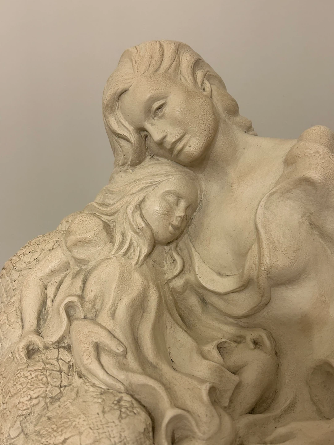 A beautiful and substantial vintage 1988 sculpture titled “Mother and Child” by artist Alice Heath, produced by Austin Productions.