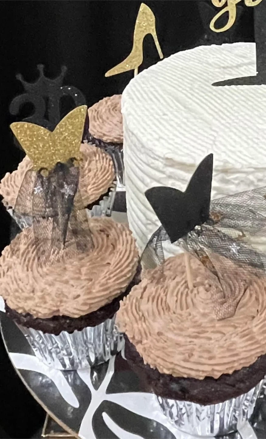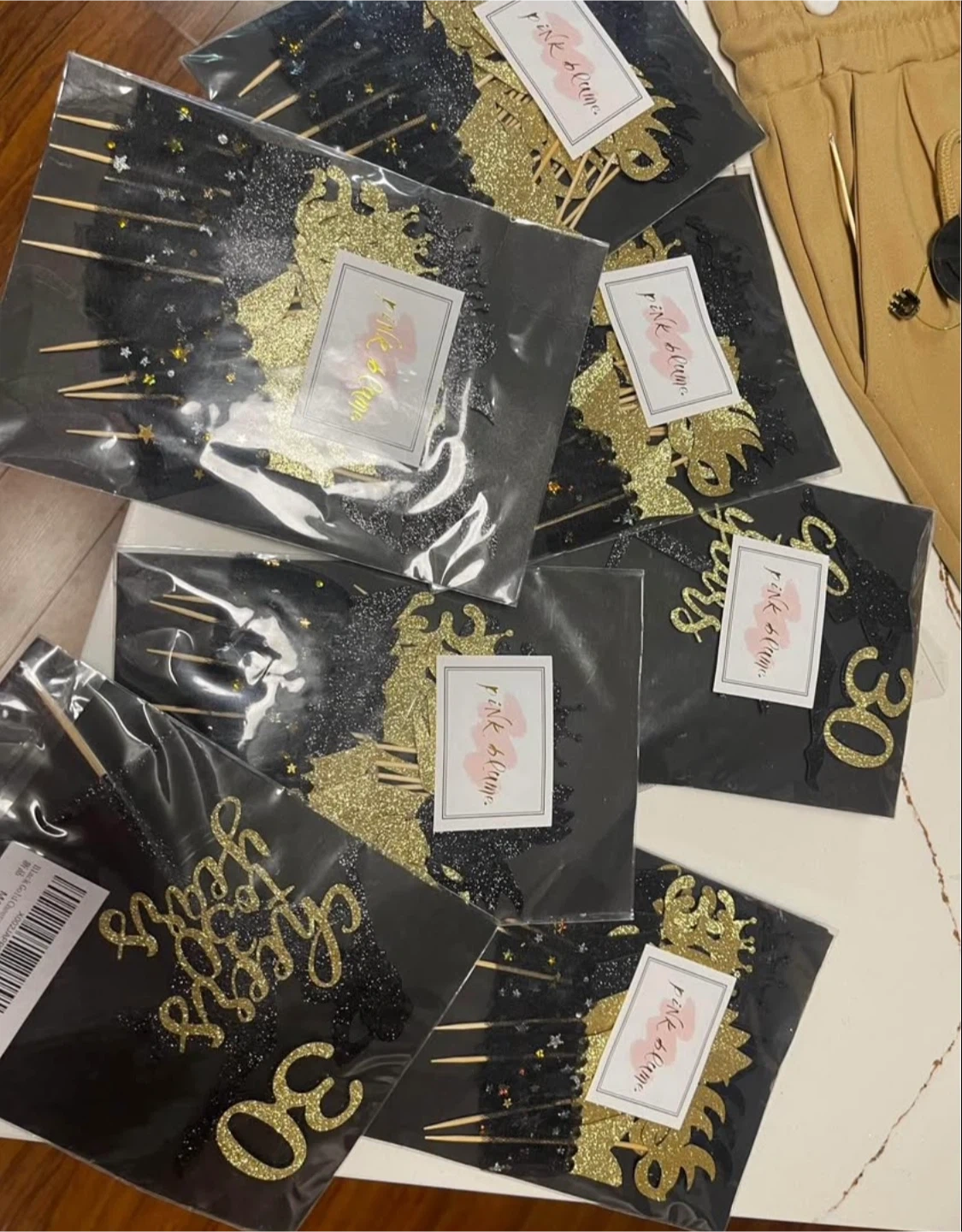Selling a set of Pink Bloom cake and cupcake toppers, perfect for a 30th birthday celebration! They're in great condition and ready to add some sparkle to your party