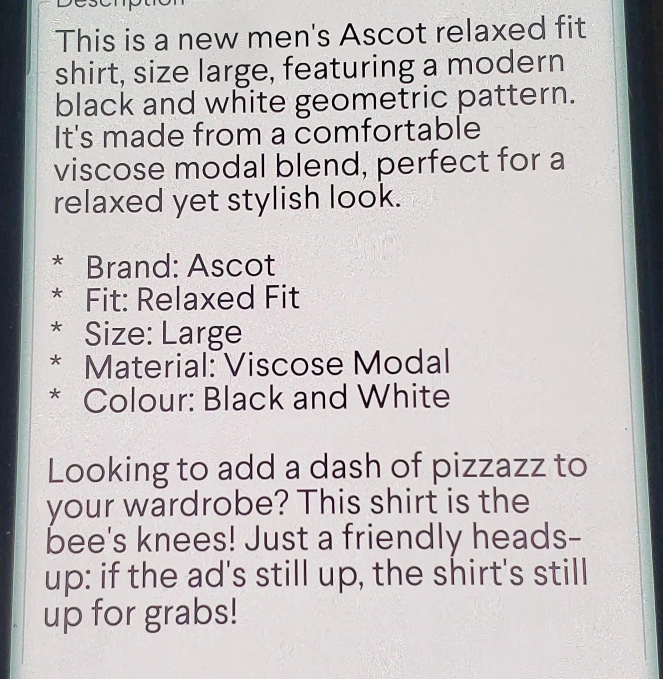 Men's/ Boys Ascot Relaxed Fit Shirt Size L New