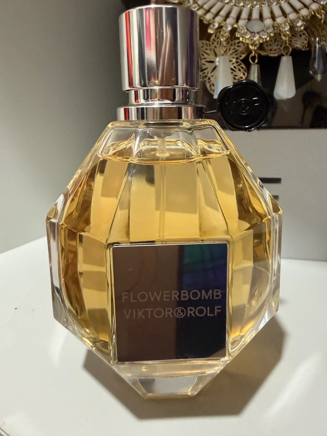 Viktor & Rolf Flowerbomb Eau de Parfum spray. It's a captivating scent. The bottle is faceted glass with a silver cap.