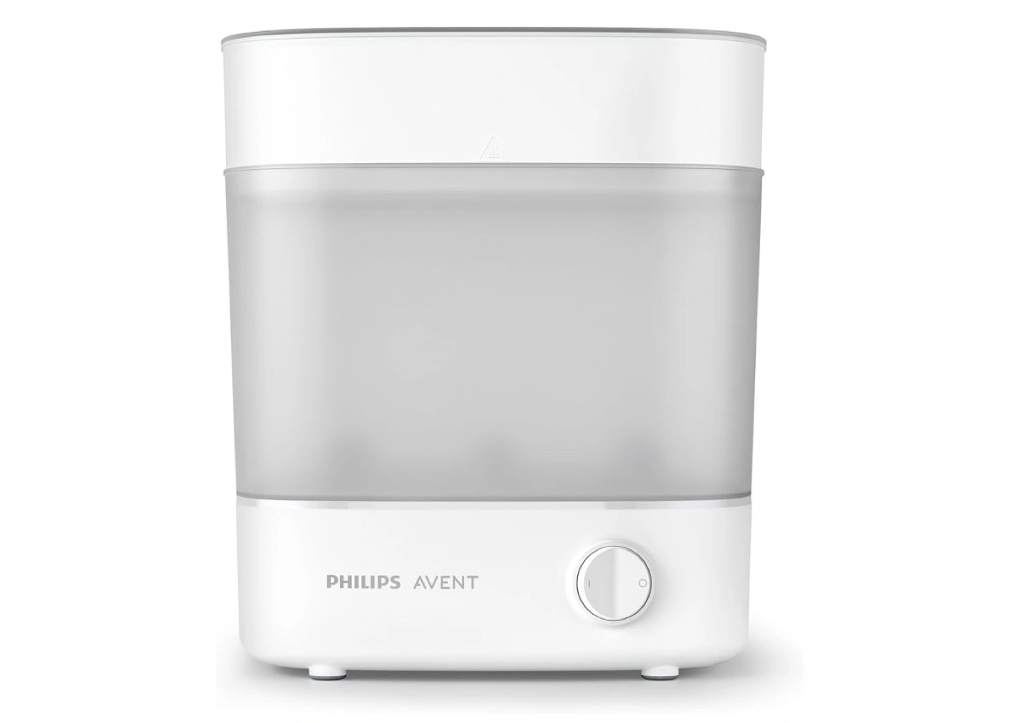 • Sterilizes in just 6 minutes with the press of a button; progress indicator light indicates when contents are sterile