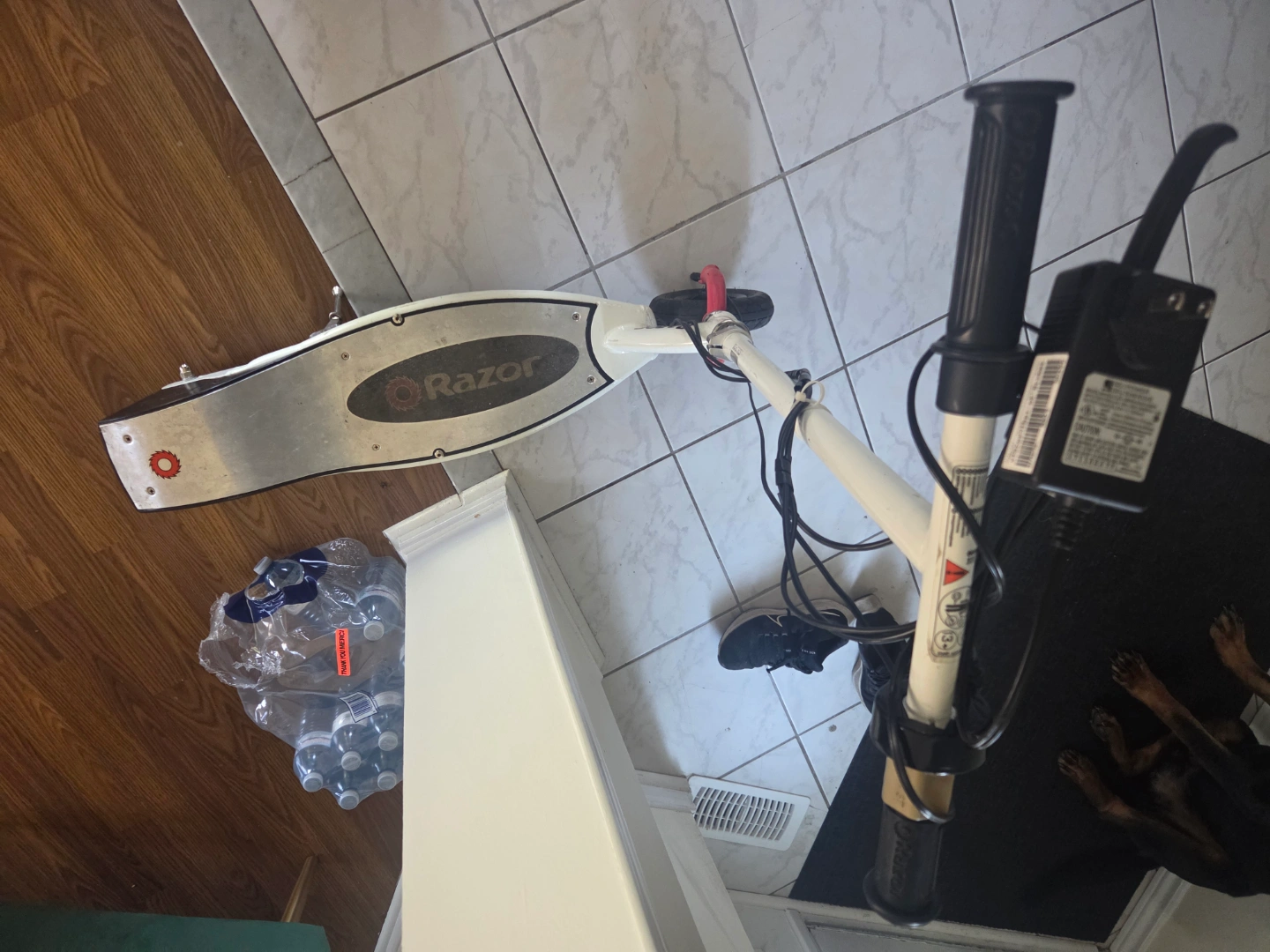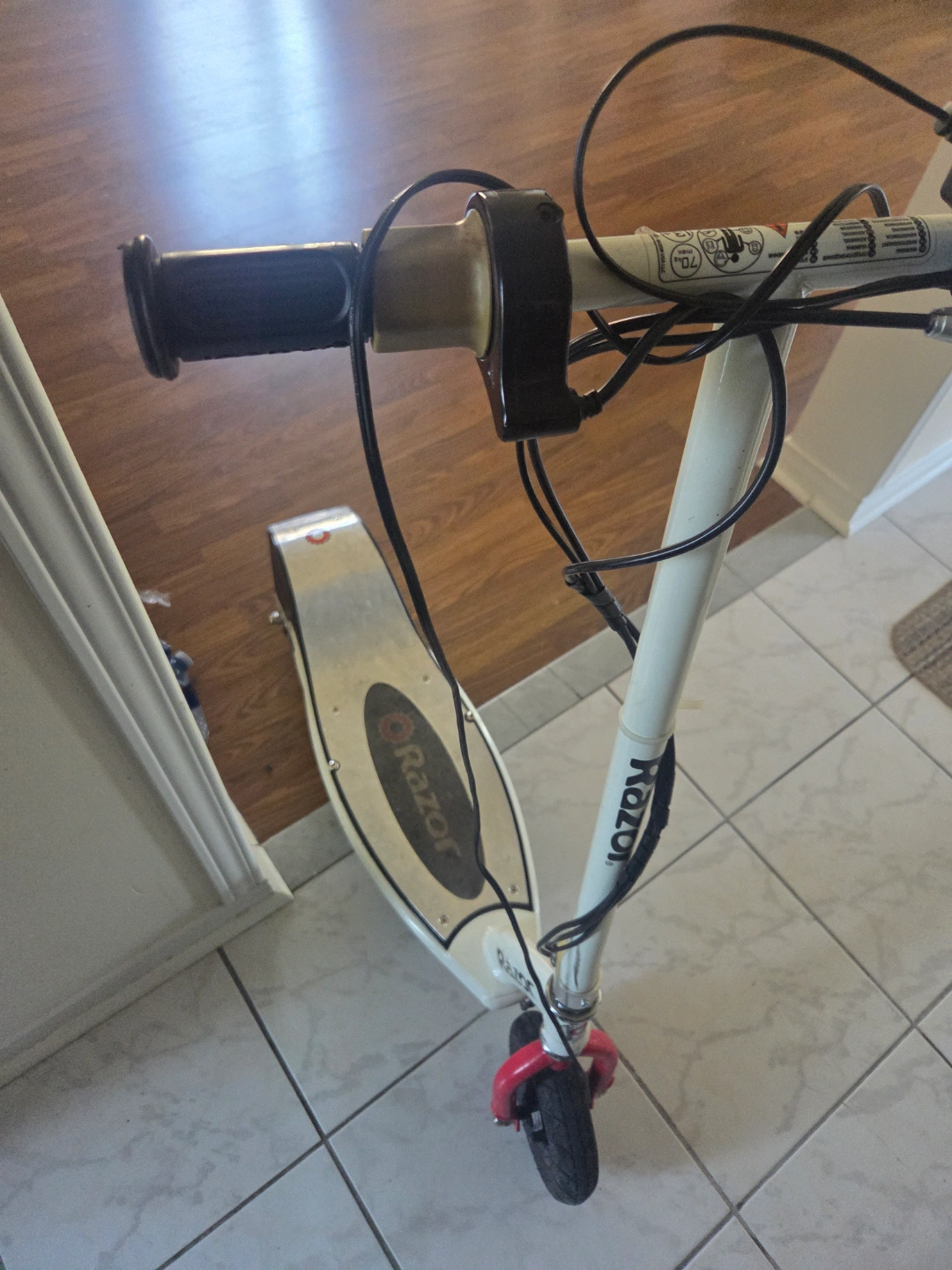Used Razor E100 electric scooter. White frame. Good for kids and teens. Some wear and tear. need new battery $40 Amazon.