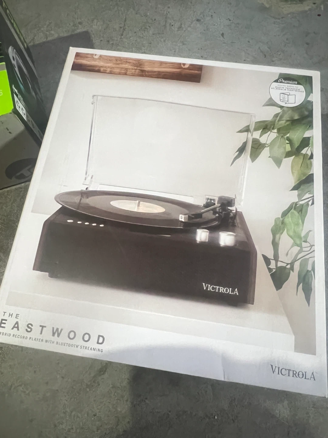Selling a Victrola Eastwood hybrid record player! It comes with Bluetooth streaming so you can play music from your phone or other devices. It's in great condition and comes in the original box
