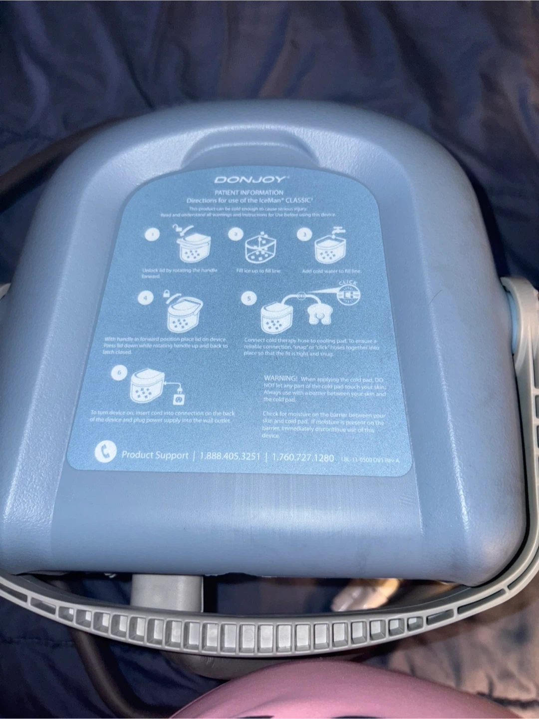 This is a DonJoy Iceman Classic cold therapy unit. It's designed for pain relief and recovery. It includes the main unit and a user manual. Never been used it’s still in the box.