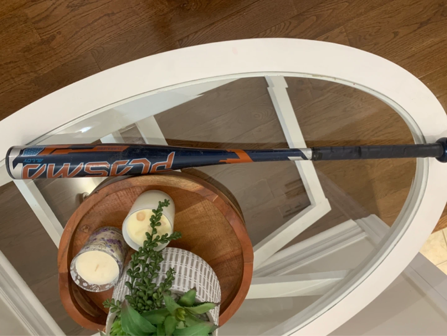 This is an Easton Plasma alloy baseball bat. It's a blue and orange colour. Great for baseball practice or games! 30 inch