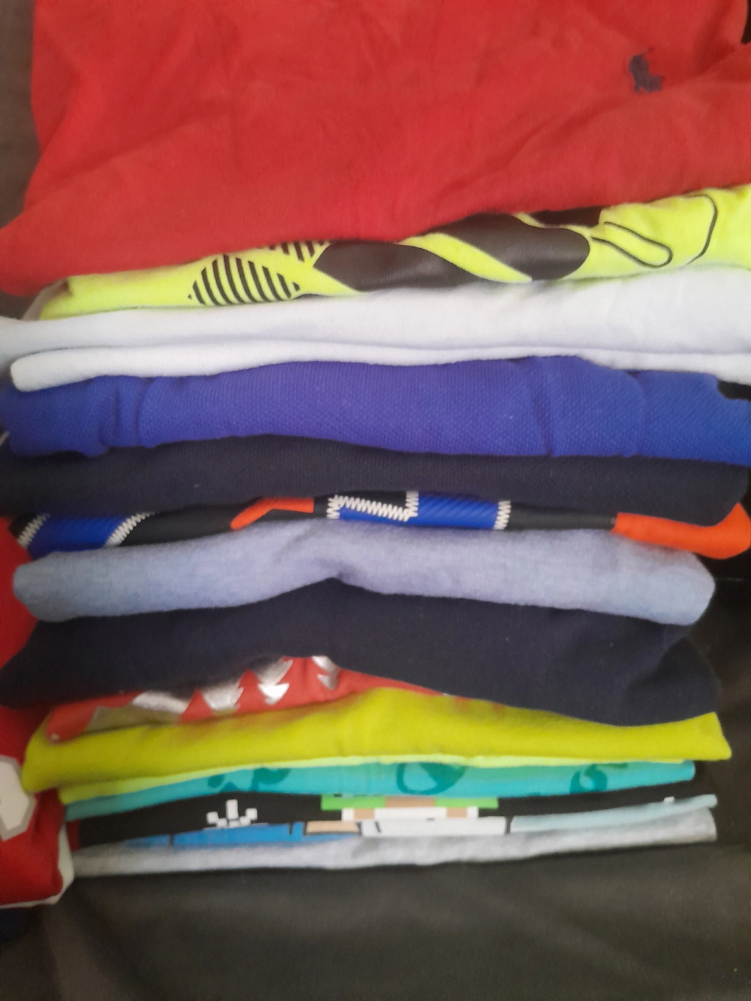 Large bundle of boys' clothing. Includes various t-shirts, a Toronto Raptors jersey, and other tops. Sizes vary. Good condition. all $80