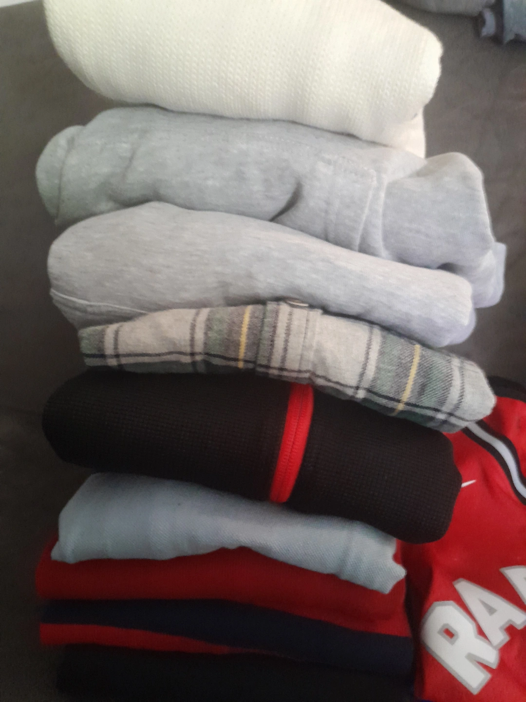 Large bundle of boys' clothing. Includes various t-shirts, a Toronto Raptors jersey, and other tops. Sizes vary. Good condition. all $80