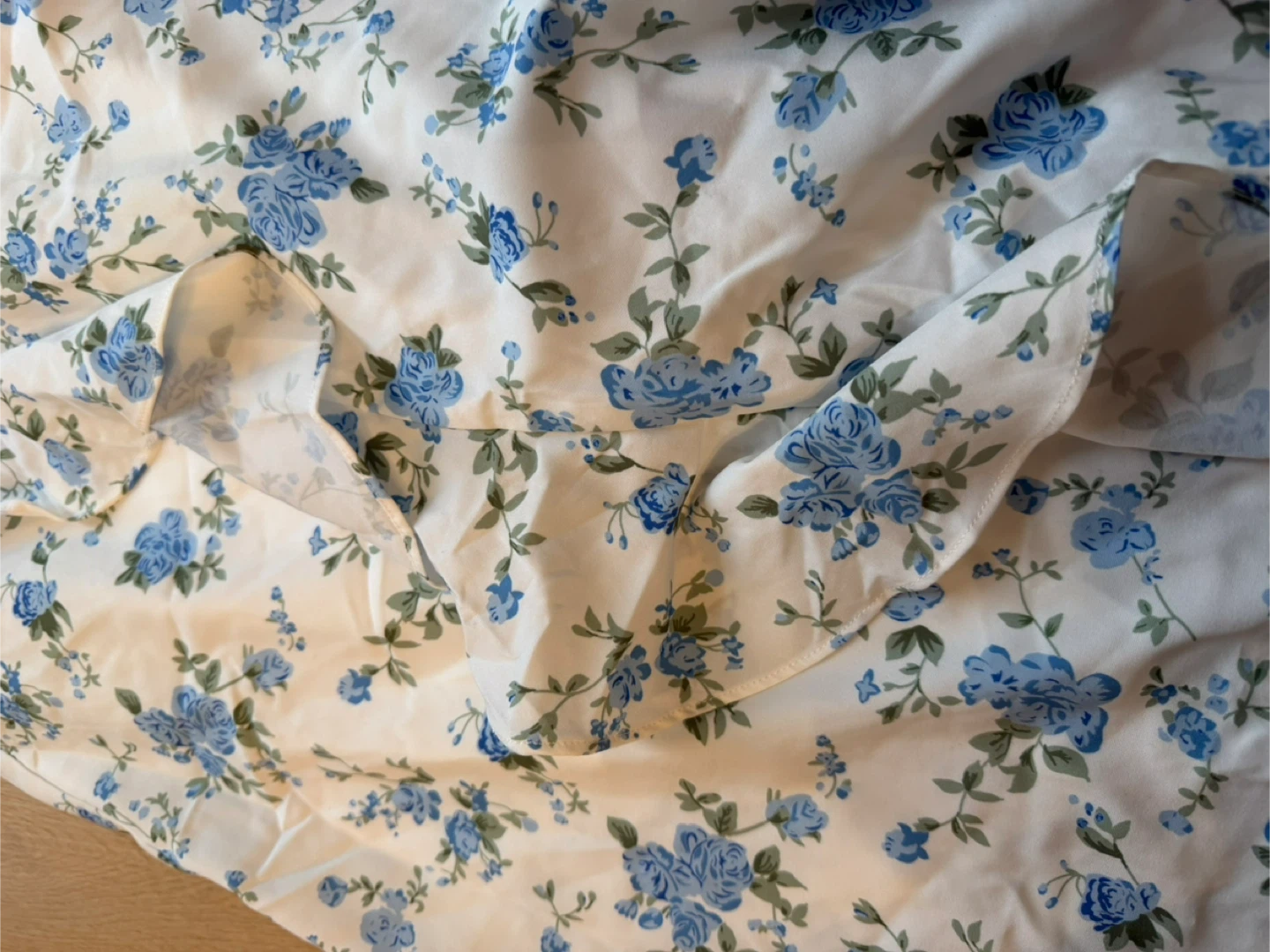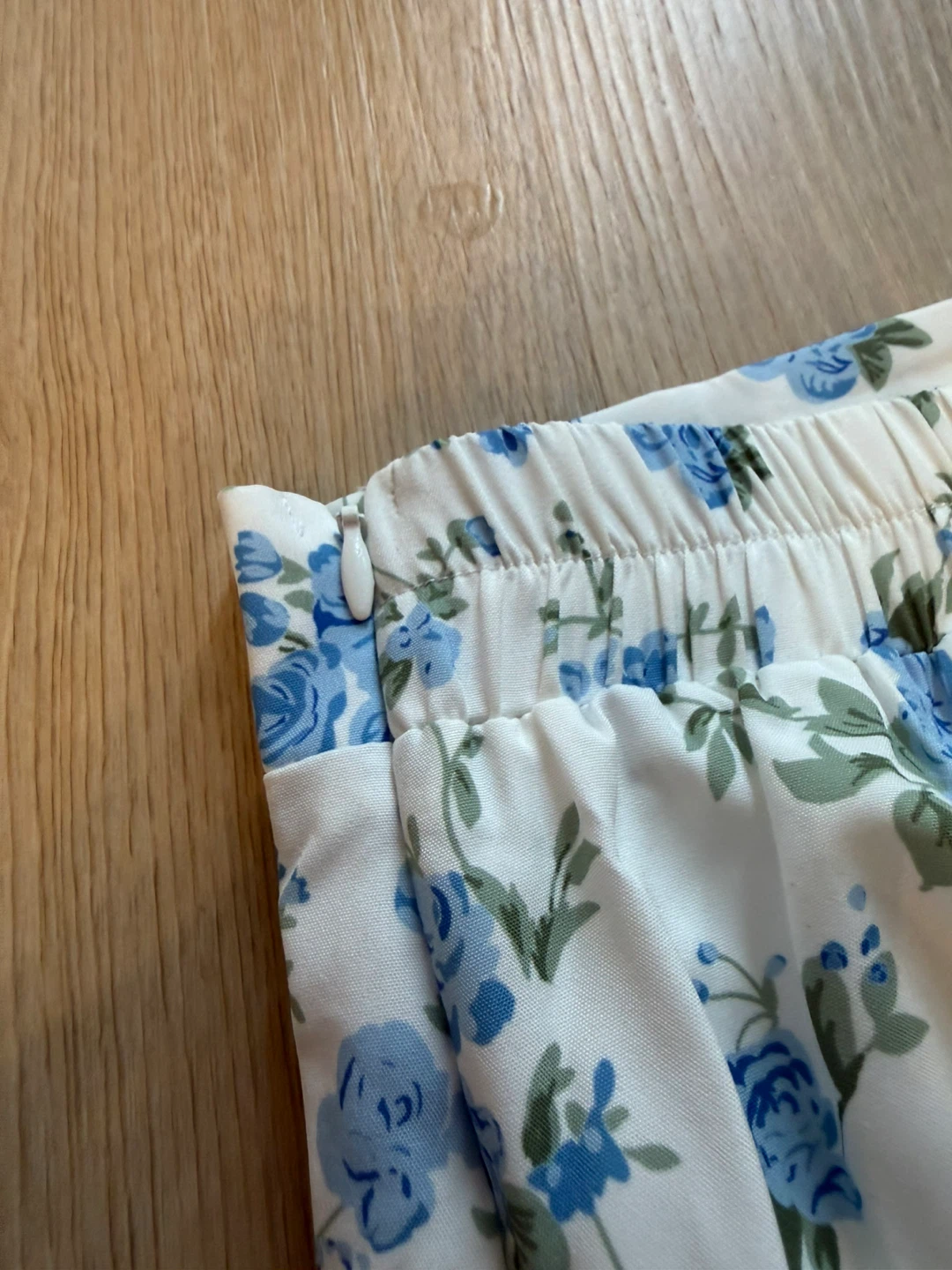 Selling a lovely skirt with a blue and white floral print! It's in great condition and would be a wonderful addition to your wardrobe. The skirt features an elastic waistband for a comfortable fit. Perfect for a casual day out or dressing up for a special occasion