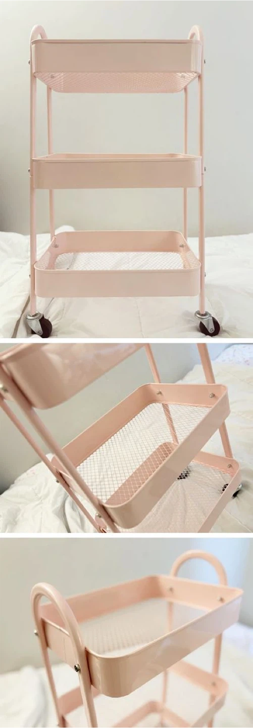Pink 3-Tier Rolling Storage Cart