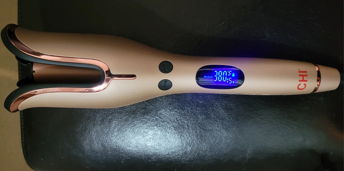 CHI Spin N Curl Special Edition Rose Gold Hair Curler, 1 inch barrel. Perfect for shoulder-length hair. The open chamber protects against burns and heats up to 410°F for all hair types.