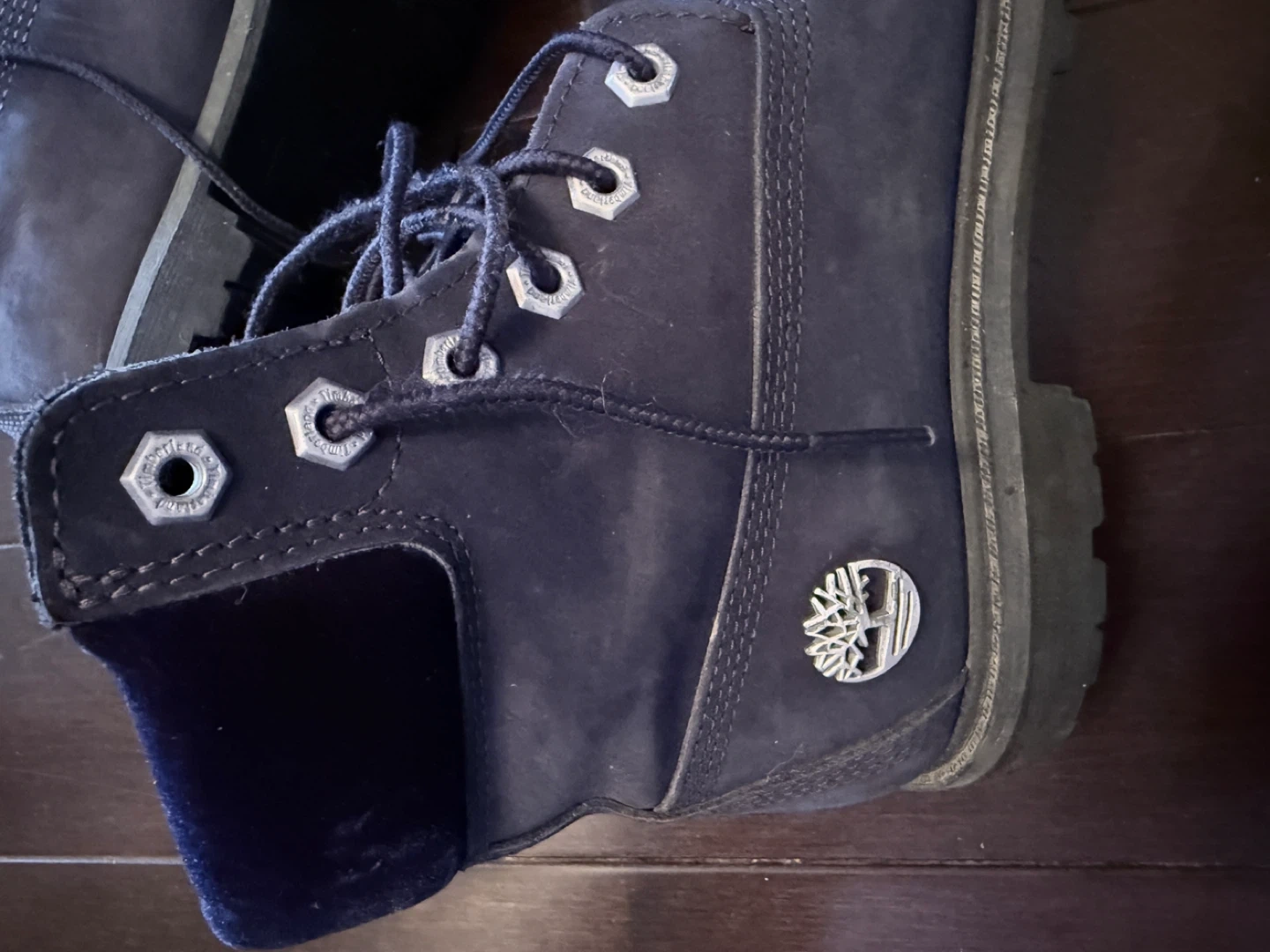 Timberland boots in a rich navy blue colour. They're made with suede and feature velvet accents around the ankle. Lace-up closure for a secure fit. These boots are perfect for everyday wear.