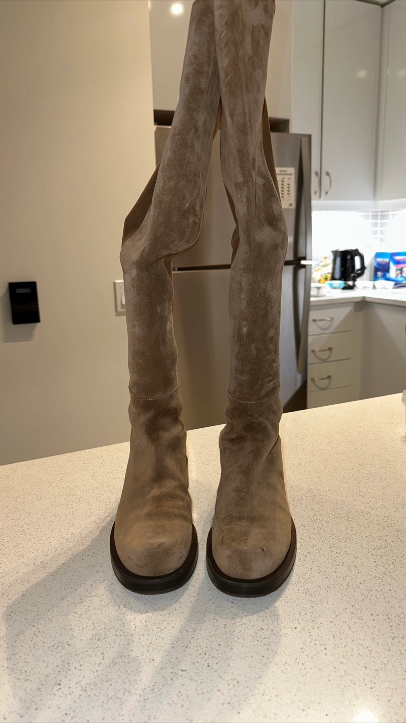 Selling a pair of Stuart Weitzman over-the-knee 5050 boots in a lovely suede material! They are a size 7 and would be a great addition to your wardrobe for fall and winter. Worn only once.