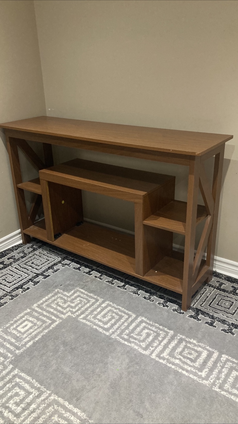 Selling a wooden console table. It's in great shape and would look great in any living room or hallway. It has a nice finish and some handy shelving for storage or display