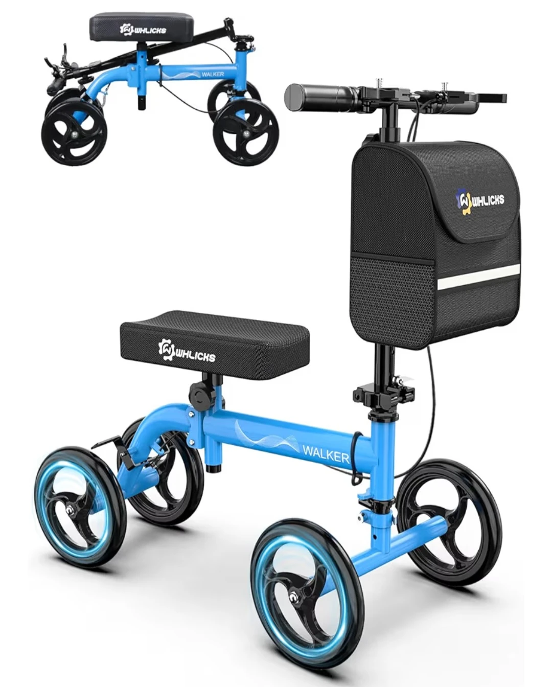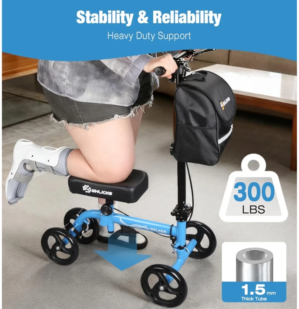 Ideal for adults recovering from foot surgery, ankle sprains, leg fractures, or below-knee amputations, WHLICKS knee scooter reduces pressure on injured areas ,enabling a smoother recovery process. Whether you’re moving around at home, at work, or outdoors, this scooter keeps you active and independent.