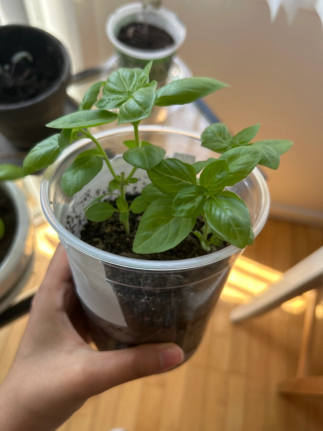 I'm selling a healthy basil plant seedling. This little guy is ready to be planted in your garden or a larger pot. It's perfect for adding fresh basil to your cooking! It comes in a clear plastic cup.