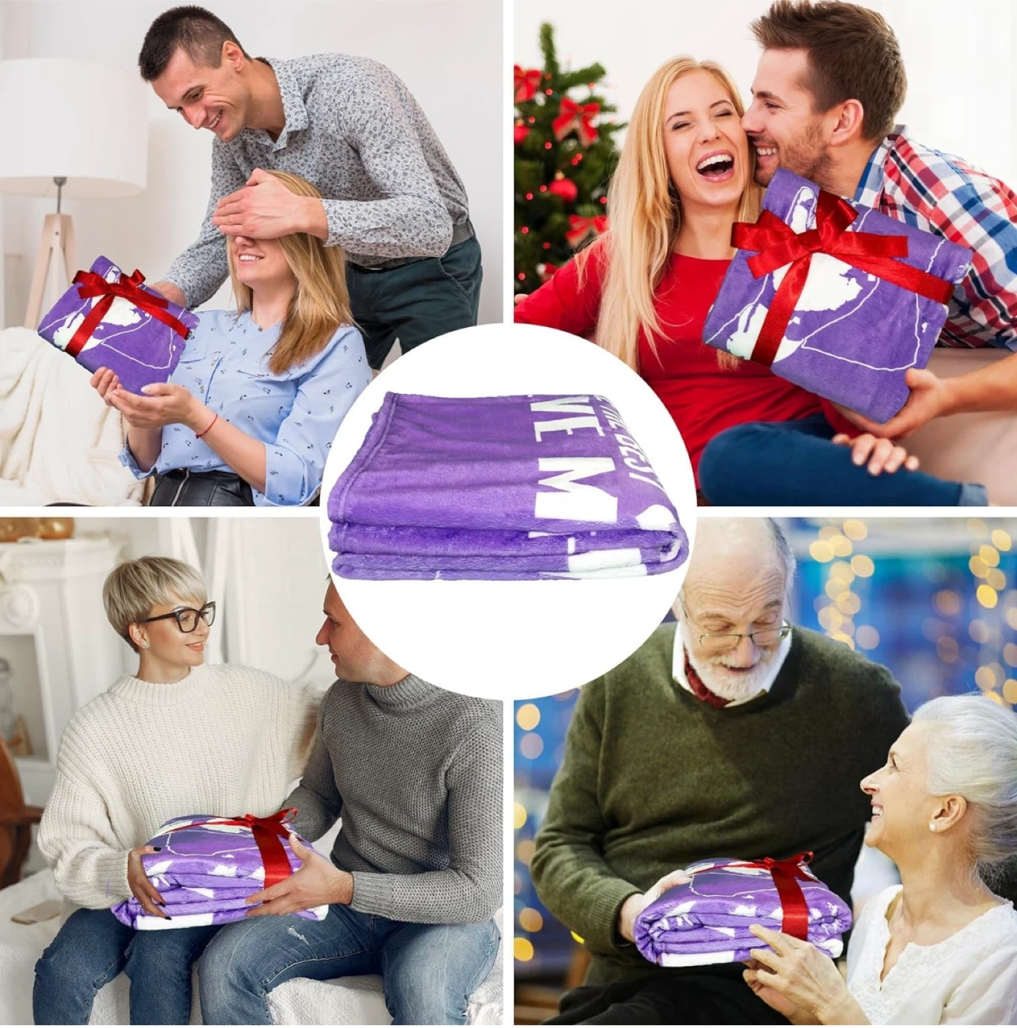 The blanket is purple and measures 60" x 50".