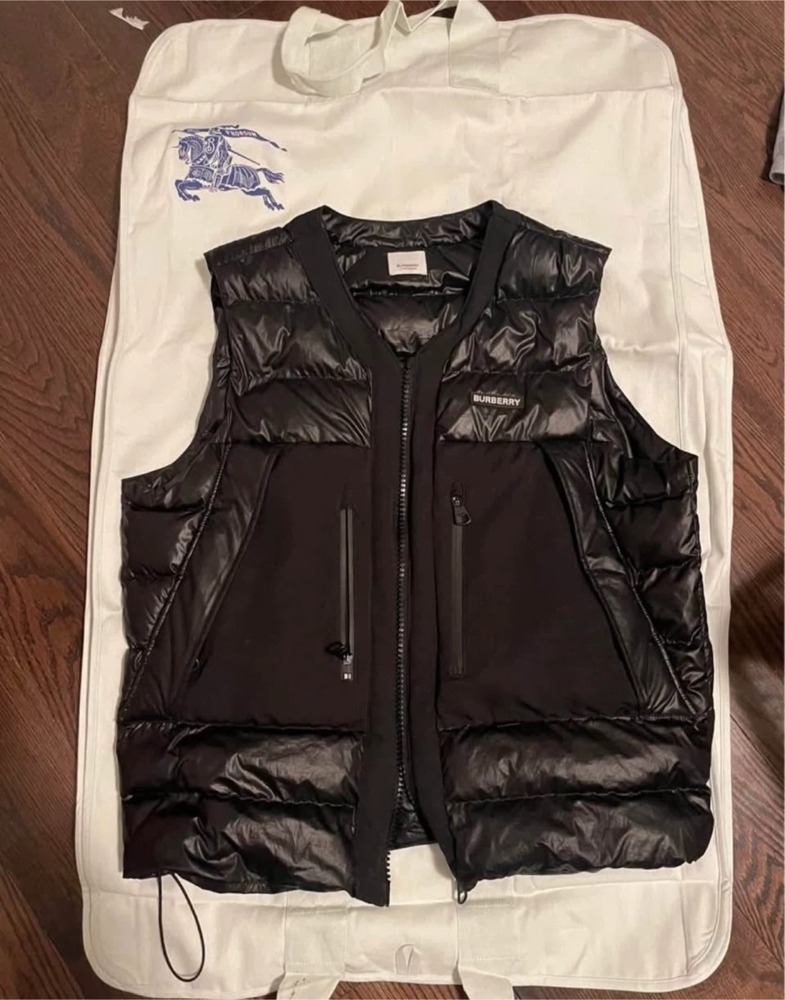 I am selling an Authentic Mens Burberry Puffer Vest Black (Medium/Large). It was purchased from Copley Place in Boston. Worn 3-4 times during the fall, never in the rain or snowy conditions. Vest is still in mint condition. Comes with the original Burberry Dustbag. Retail $1635.94. Price is negotiable, but low offers will be ignored. Will entertain trades as well.