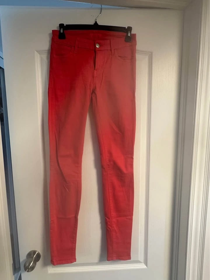 - Bright red Koral full length jeans.