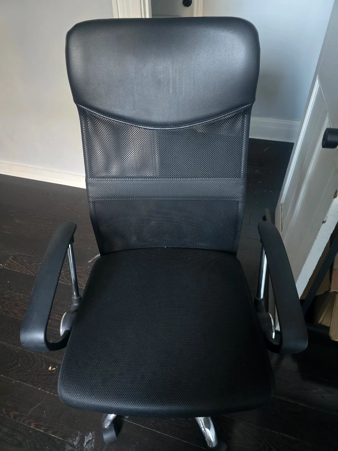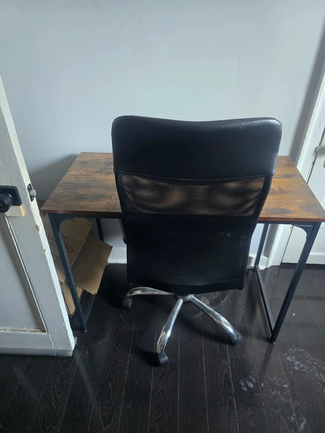 This desk features a rustic wood-look tabletop with a durable black metal frame. It's a sturdy piece that fits well in smaller spaces. It's great for a home office or study area!