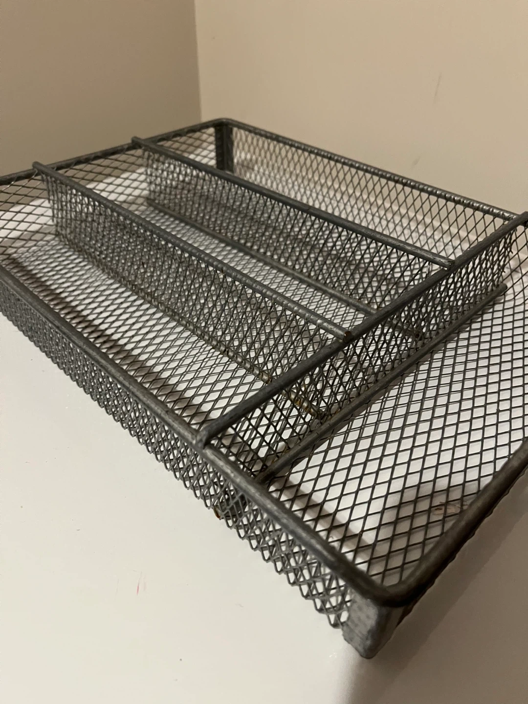 Selling a metal mesh cutlery tray. It's in great shape and ready to organize your kitchen drawers. Perfect for keeping your knives, forks, and spoons neatly separated