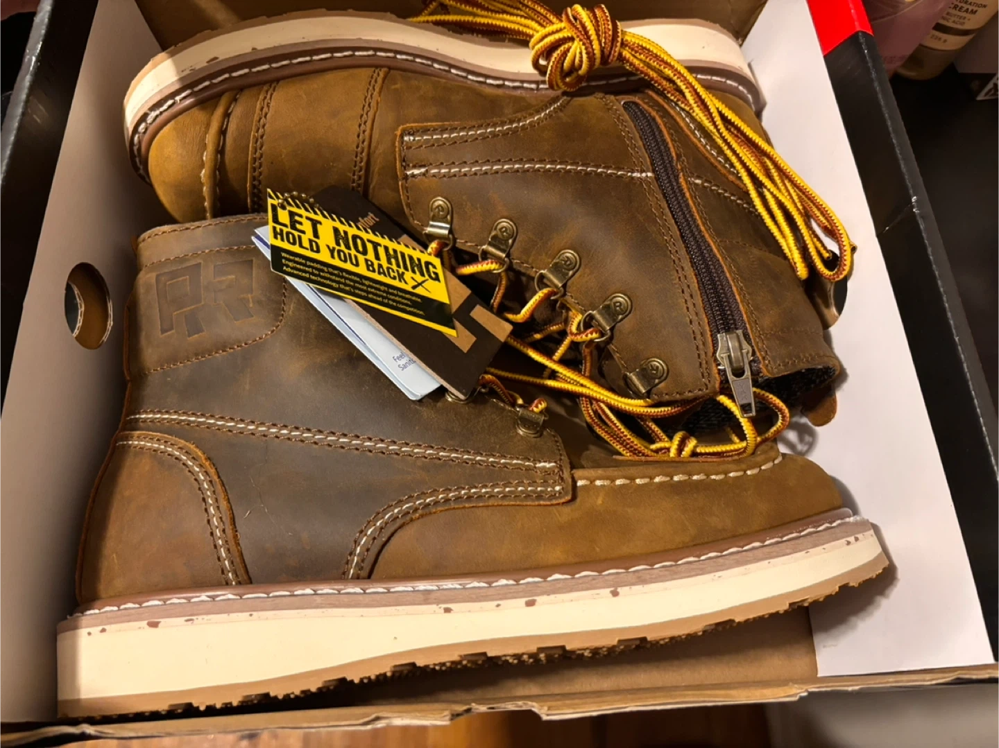 Selling a pair of RR Footwear 6" side-zipper motor boots. These are a men's US size 8, EUR 41, UK 7, and CM 26. The color is Magnolia. The boots are a medium width and feature Coolmax technology. The box is included!