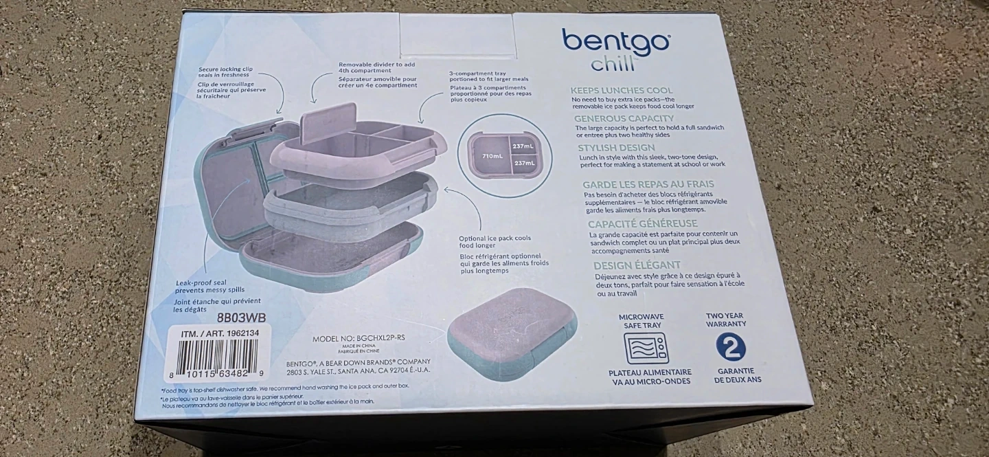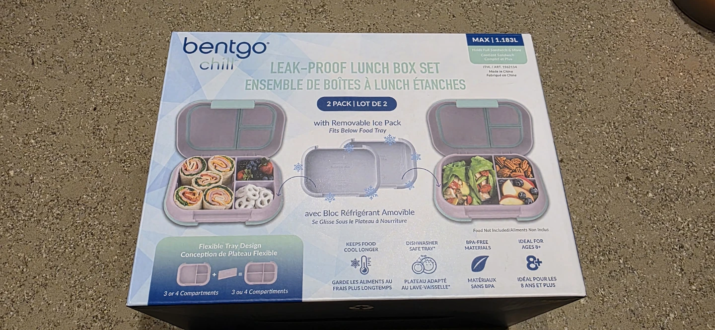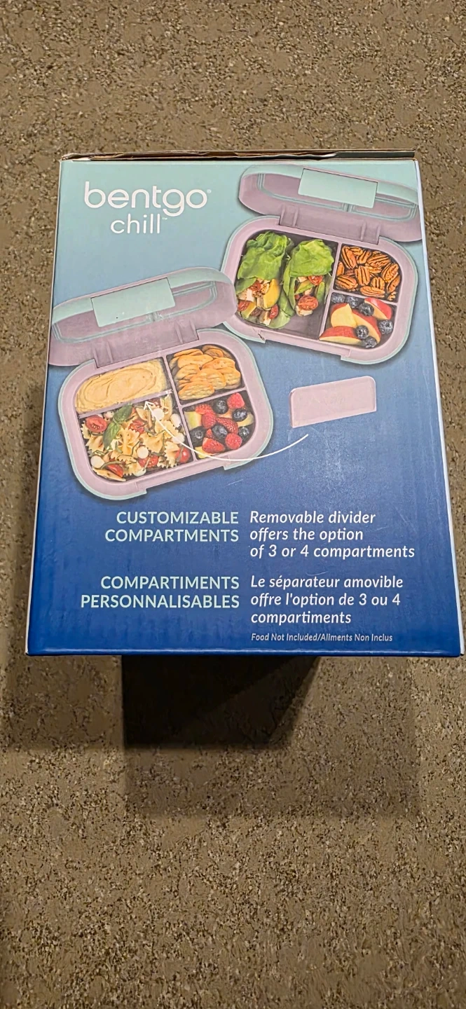Brand new in box, usually a single unit sells for over $30. Bentgo Chill leak-proof lunch box set. Customizable compartments offer the option of 3 or 4 compartments. Includes removable ice pack to keep food cool.