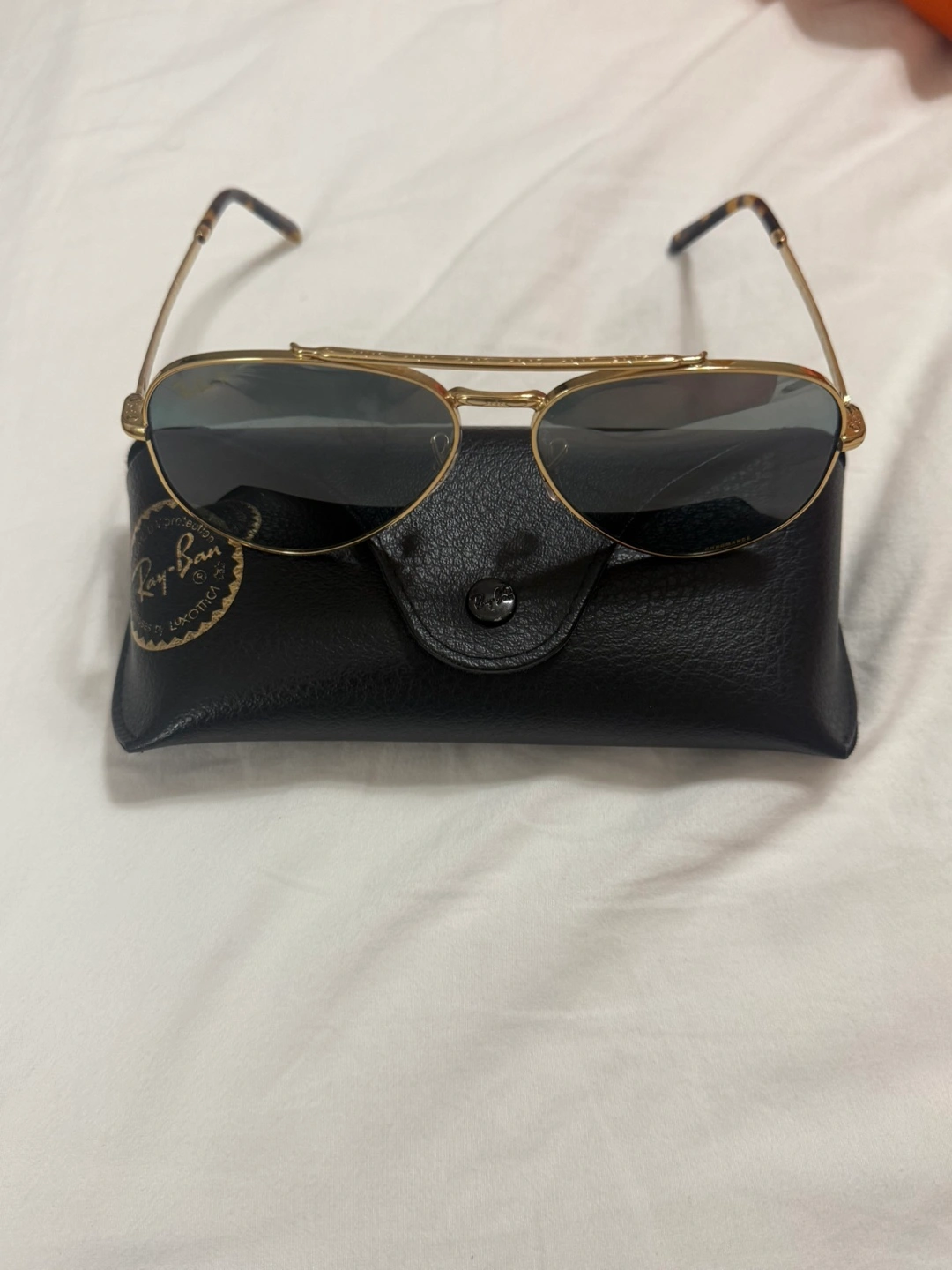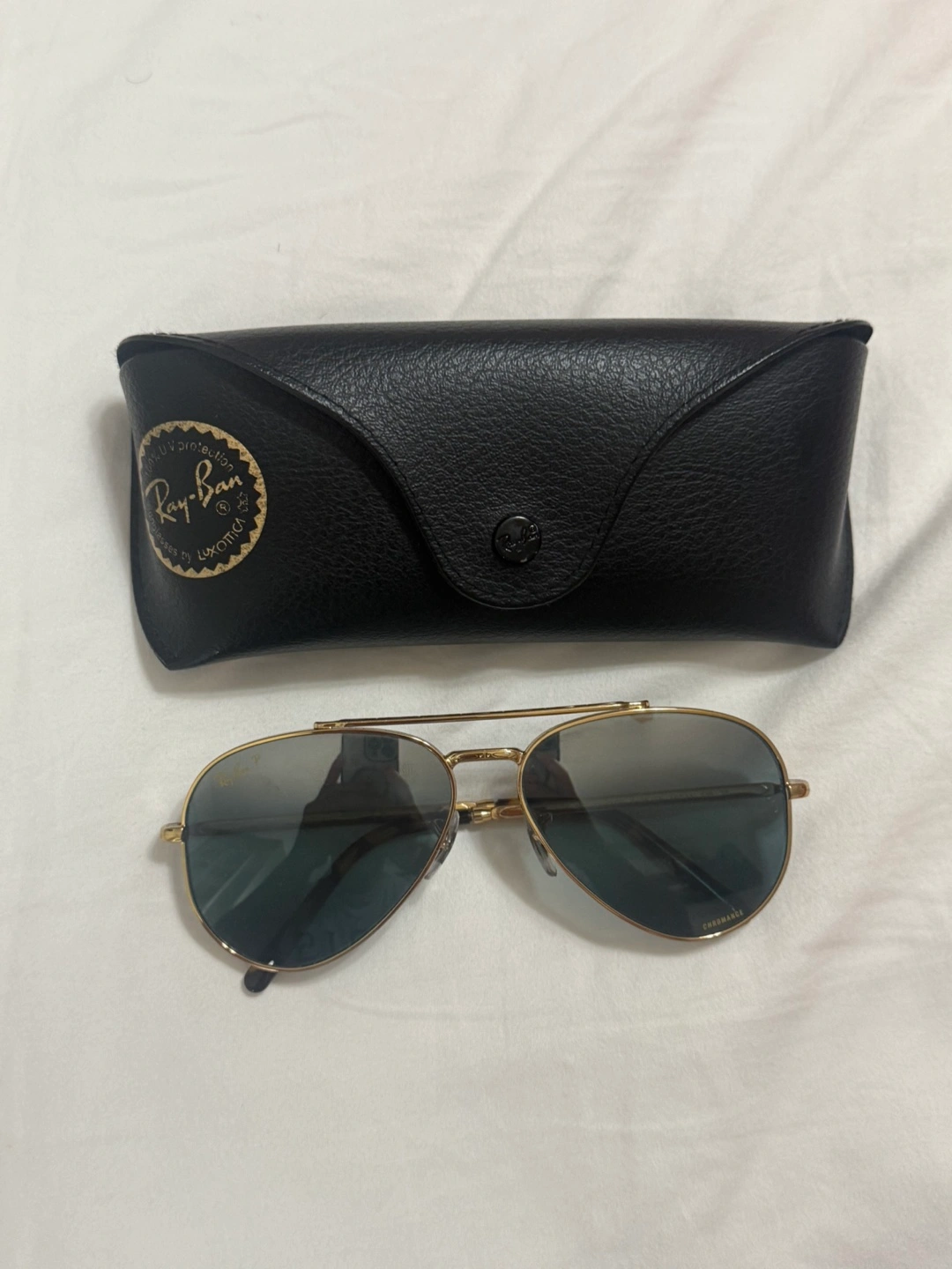 Selling a pair of Ray-Ban Chromance aviator sunglasses. They feature a stylish gold frame and come with their original case. Perfect for adding a touch of class to your look!