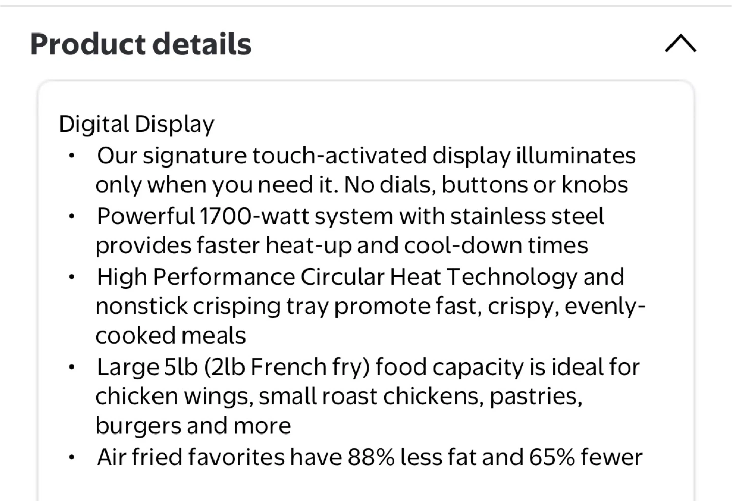 Buy & SellBeautiful Touchscreen Air FryerBeautiful Touchscreen Air Fryer$100Working great. Been stored in the cabinet as I don’t used it much. Used only a few times. Originally 148.98 +tax.ConditionLike newWHERE TO MEETCheck LocationView MapSELLERverifiedLisaWillow Brook912 reviews0 chats·0 favorites·3 viewsSEND CHAT TO SELLERHi Lisa! I’m interested in your listing.Hi Lisa! I’m interested in your listing.Get the Karrot app to chatSign In to chat
