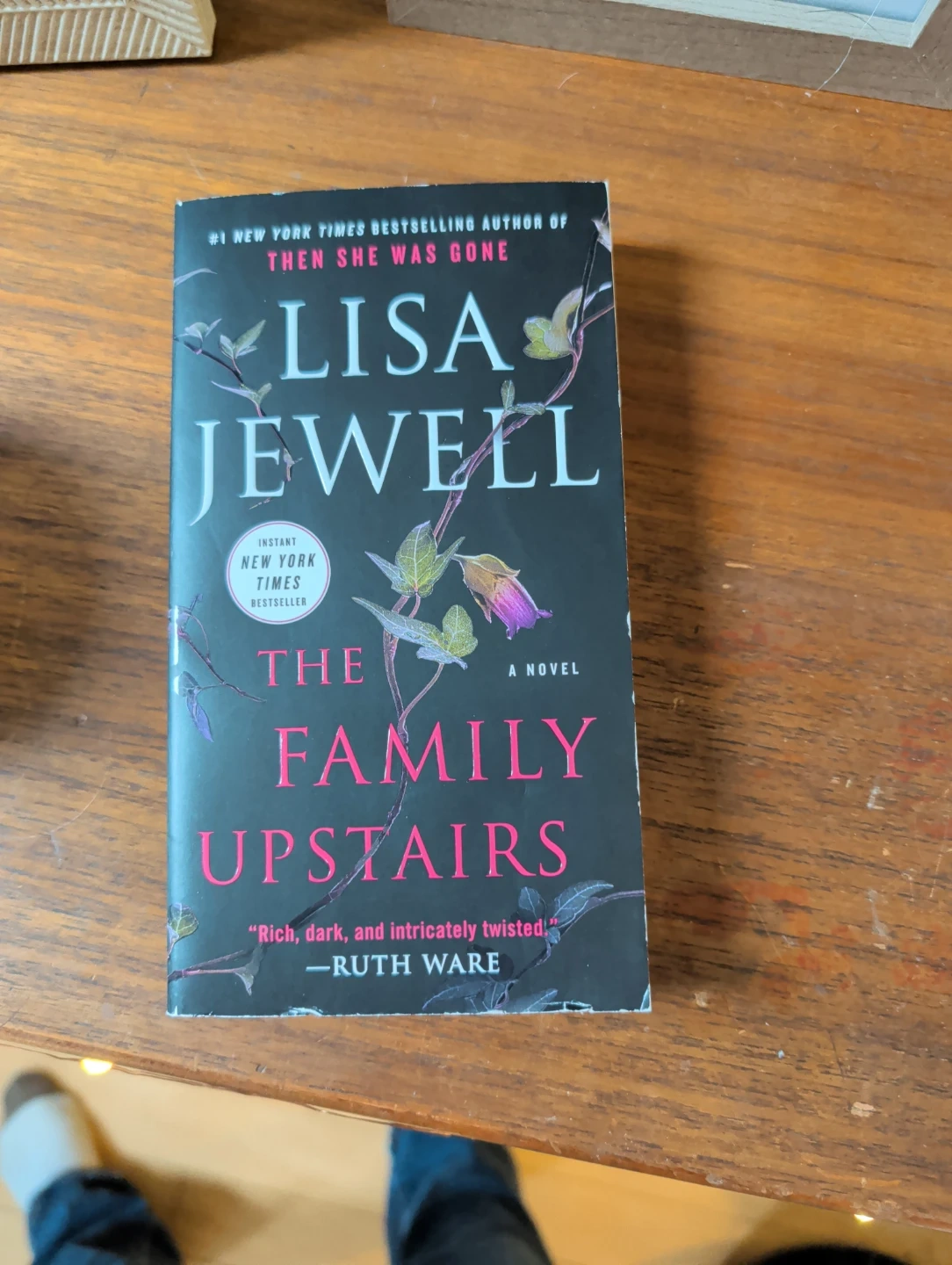 This is 'The Family Upstairs,' a novel by Lisa Jewell. It's described as a New York Times bestseller. Ruth Ware calls it "rich, dark, and intricately twisted!"