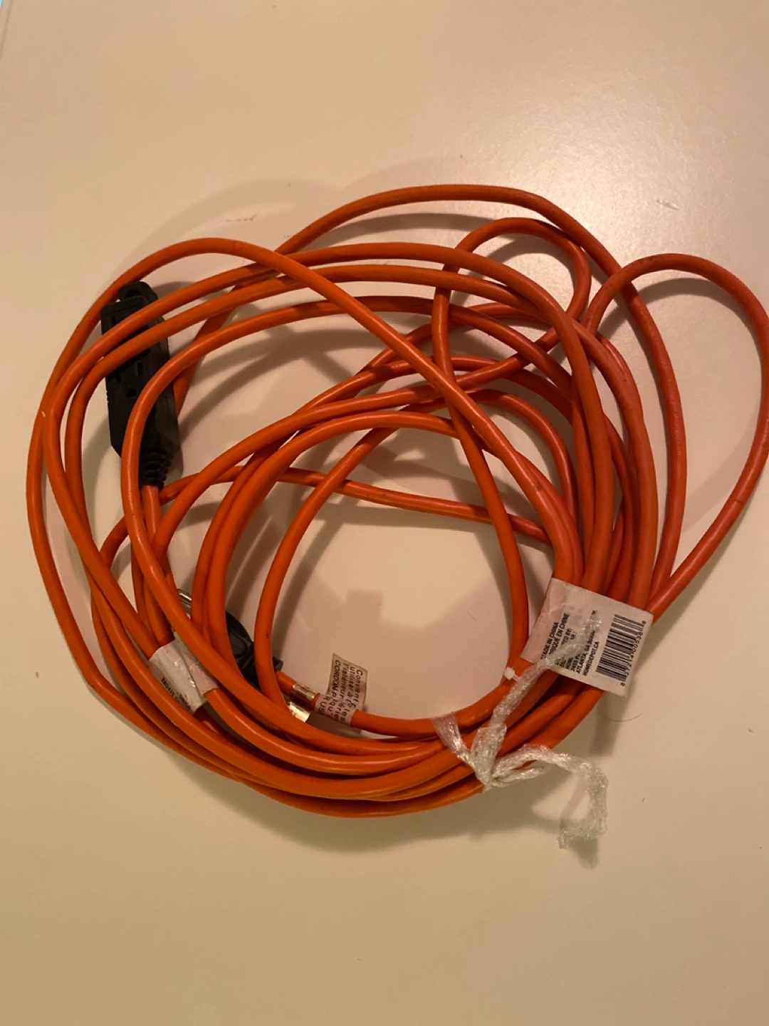Selling an HDX 30 ft light-duty extension cord. It's 16 gauge and in good condition. The length is 9.14 m