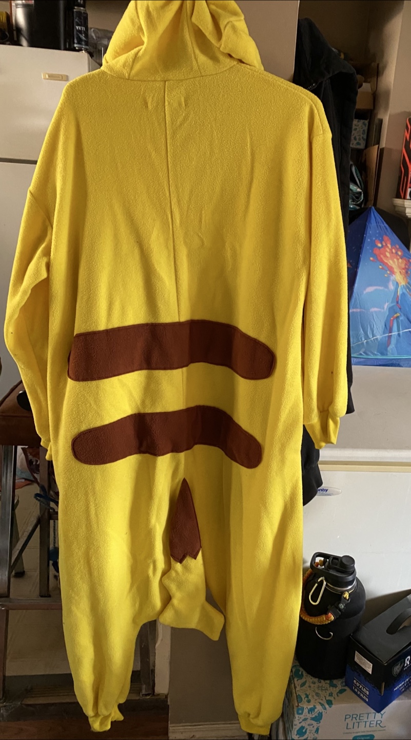 Brand new out of the package Pikachu onesie! It's a fun and cozy piece, perfect for lounging around at home or for a costume party. It's yellow with brown accents and a hood. OBO