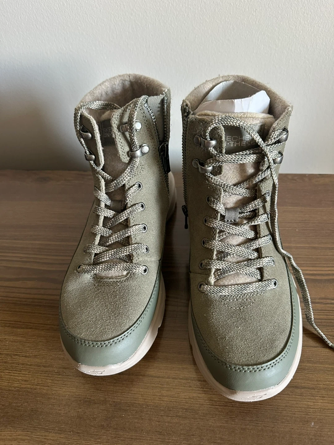 🥕Skechers Women's Olive Green Faux Fur Lined Hiking Boots Size 6