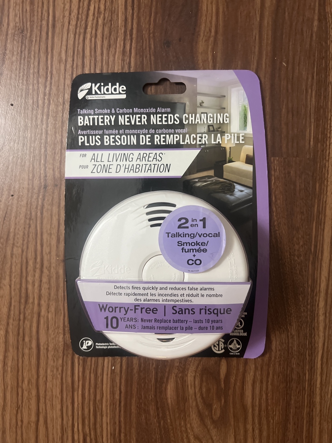 Selling a brand new Kidde P3010CU Photoelectric Smoke & Carbon Monoxide Alarm with Voice Warning System. It detects fires quickly and reduces false alarms. The battery never needs changing, and it lasts for 10 years! Originally bought for $93.99
