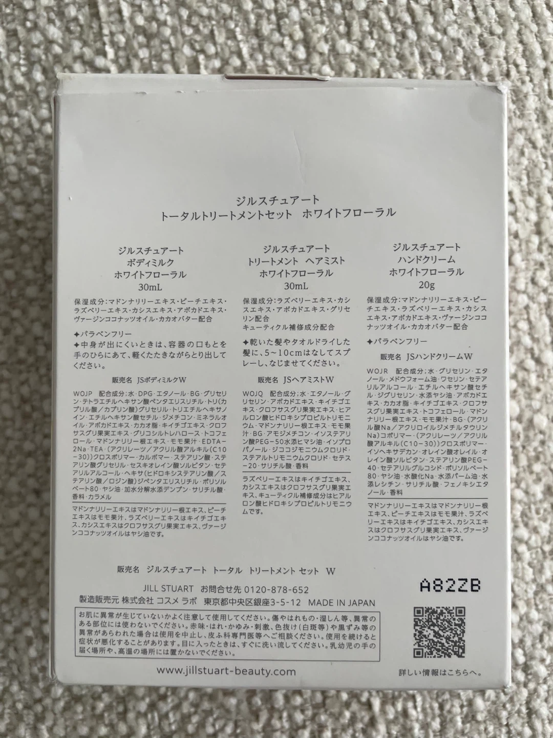 10Selling a set of Jill Stuart Total Treatment products in the White Floral scent! This set includes: - Body Milk (30ml) - Treatment Hair Mist (30ml) - Hand Cream (20g) $15 per box. 9 boxes available to pick up Perfect for travel / bday or Xmas gift