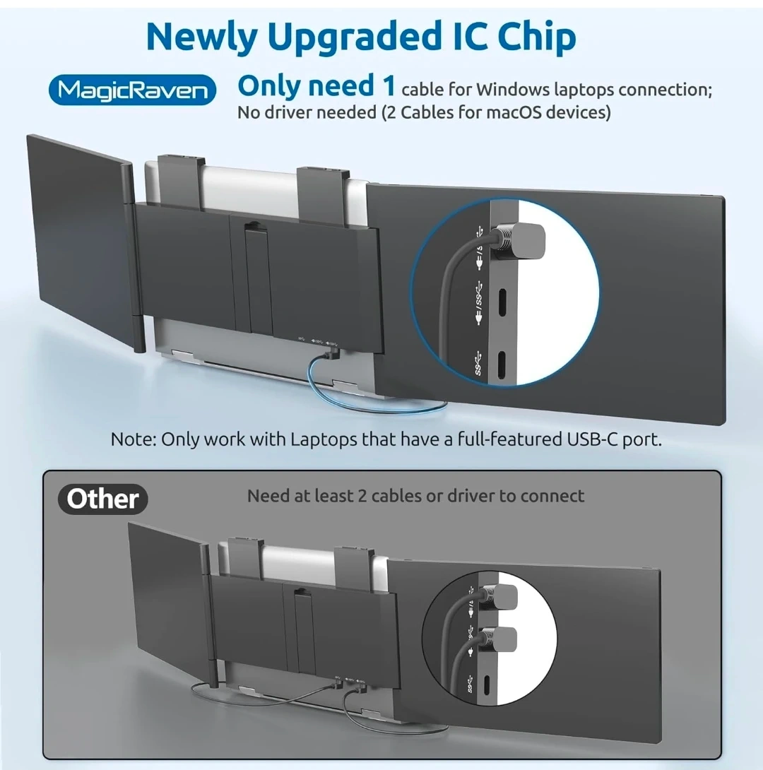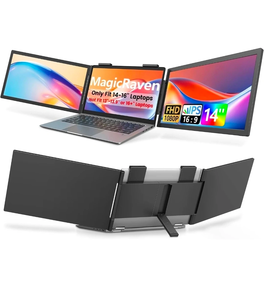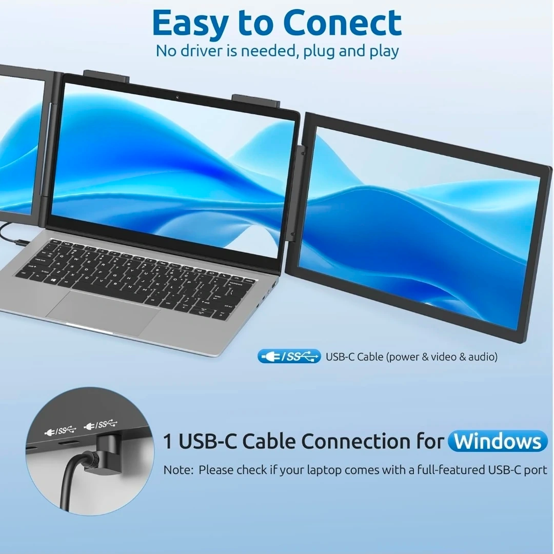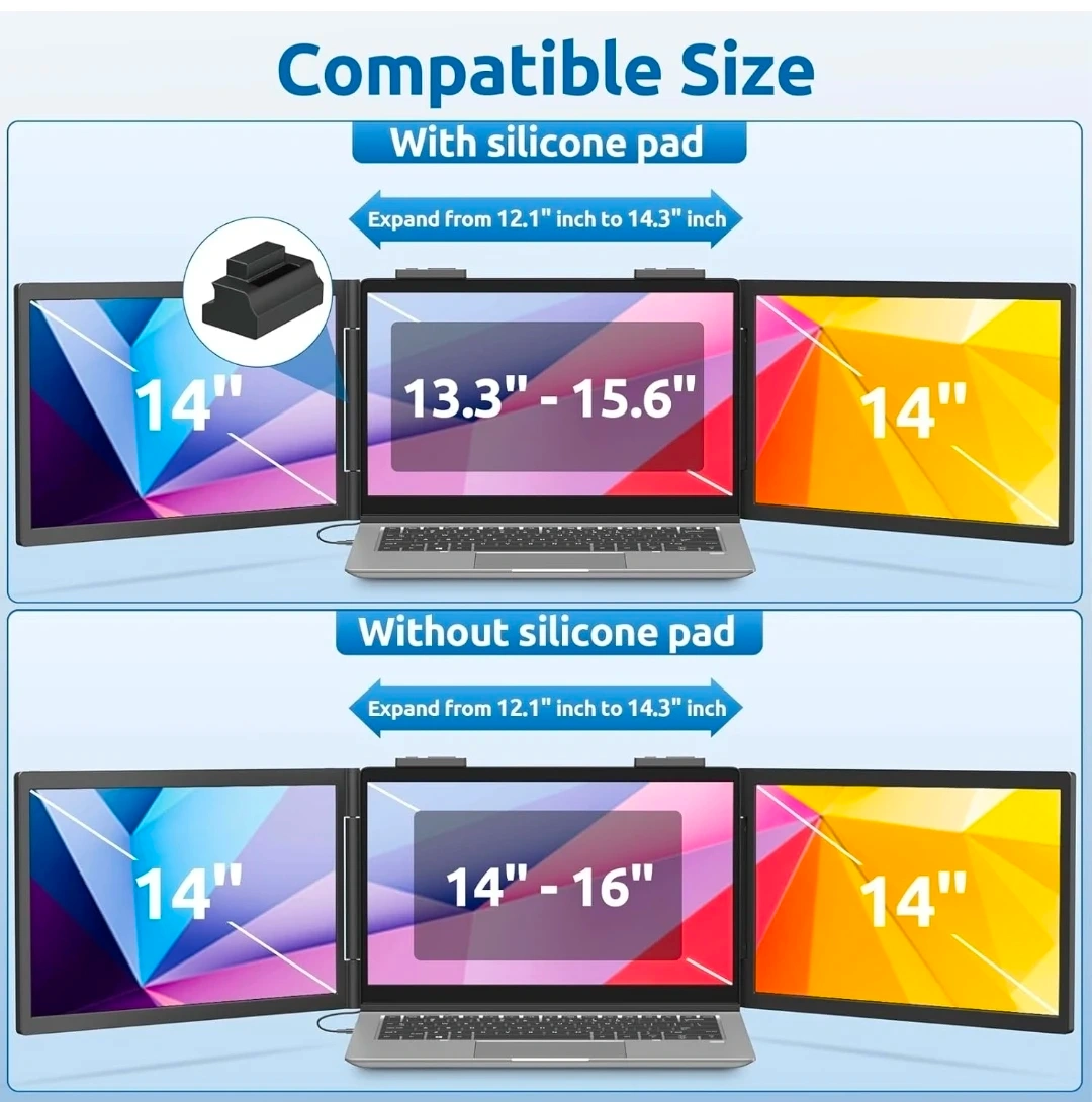 Laptop Screen Extender - 14 Inch Triple Portable Monitor IPS FHD 1080P 3-Type-C External Screen with Windows Mac Laptop Monitor Extender for Laptops Compatible, Fits 14"-16" Laptops