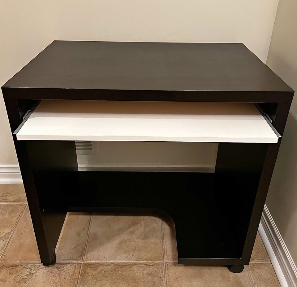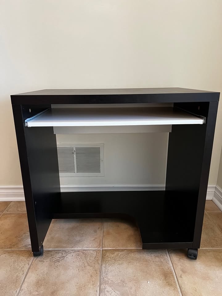 Ikea computer table with pull out keyboard shelf is in excellent condition. Has a lower shelf for a computer hard drive. Measures about 30" wide x 31" high and 19 3/4" deep.
