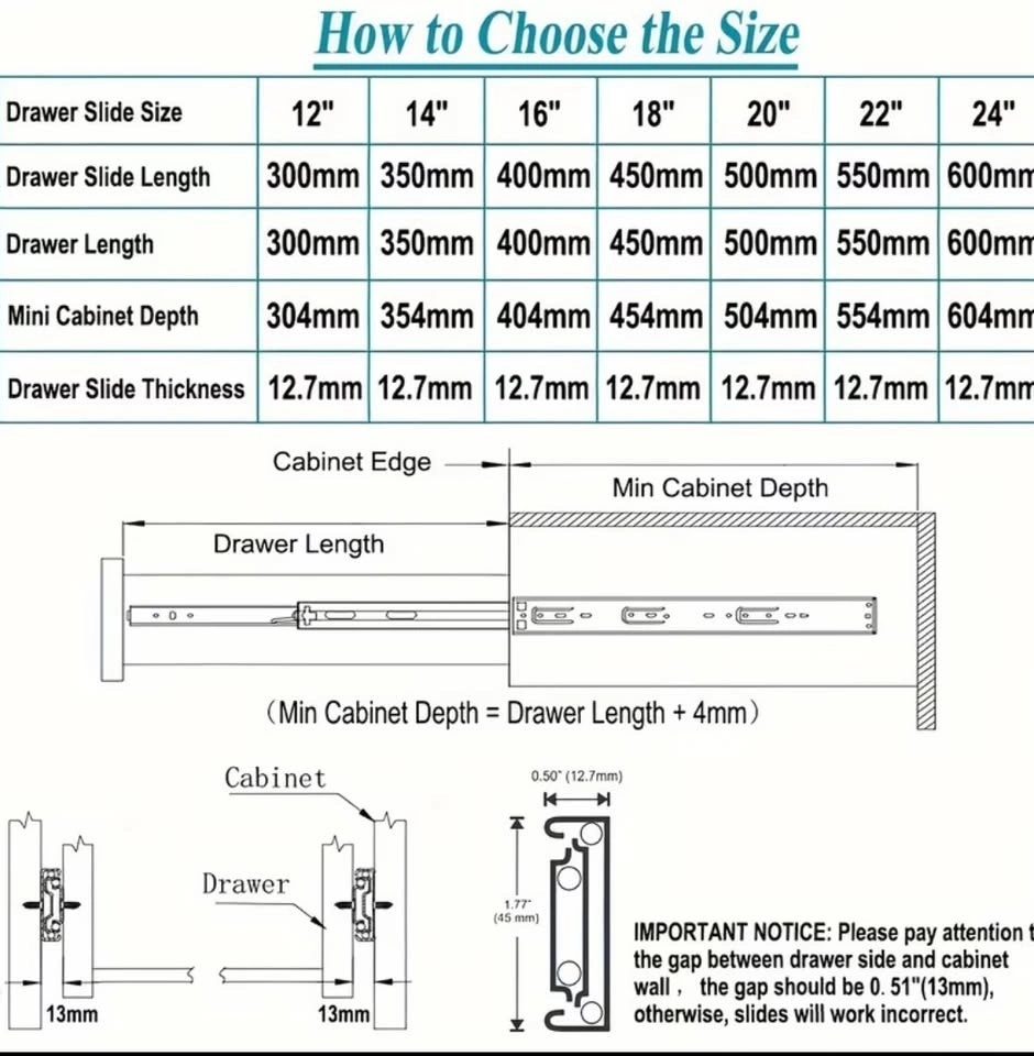 Brand New 3-Section Full Extension Drawer Slides, 16 inch