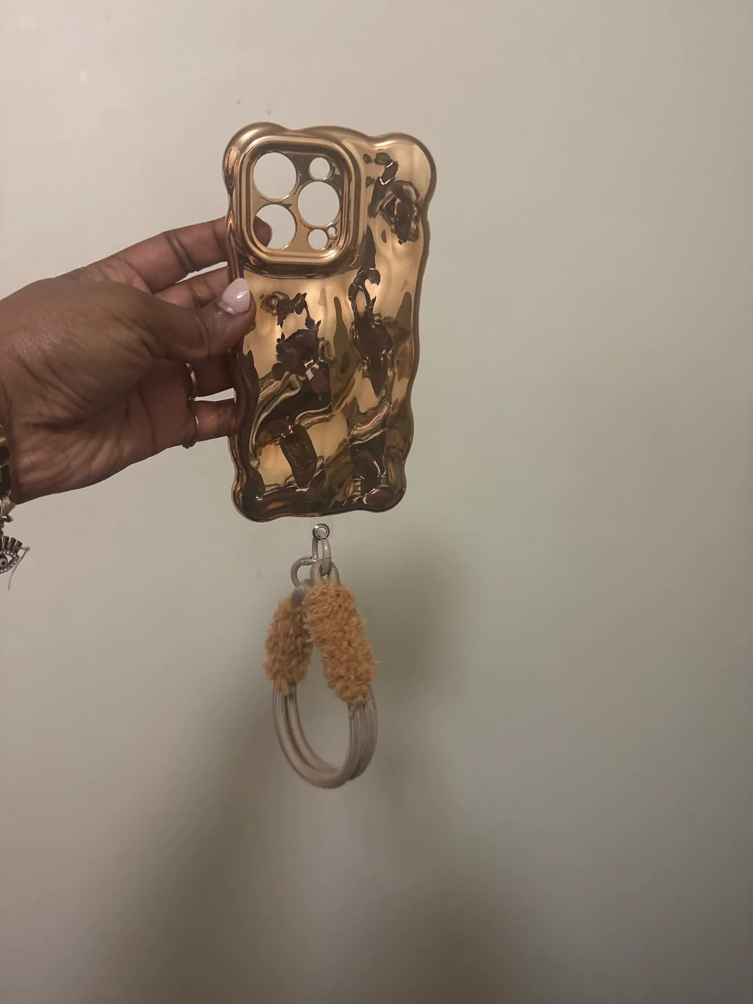 Selling a stylish iPhone 15 pro max case with a unique design and an attached ring for easy handling. The case appears to be in good condition and offers a distinctive look for your phone