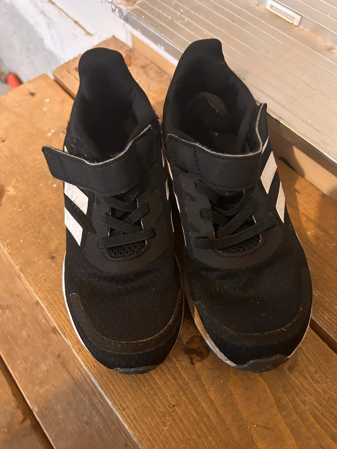 Selling a pair of Adidas kids sneakers in black with the classic three stripes! These are in US size 13.5. They show some signs of use but are still good to go for everyday wear!