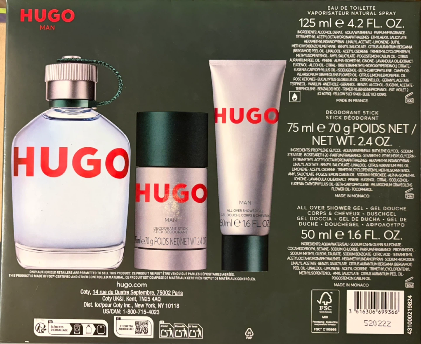 Selling a Hugo Boss Man Eau de Toilette Gift Set. It’s brand new in box. This Hugo Man Eau de Toilette spray is 125ml. Also includes a 75ml All Over Shower Gel and a 75g Deodorant Stick. This gift set is perfect for anyone who enjoys the Hugo Man fragrance.