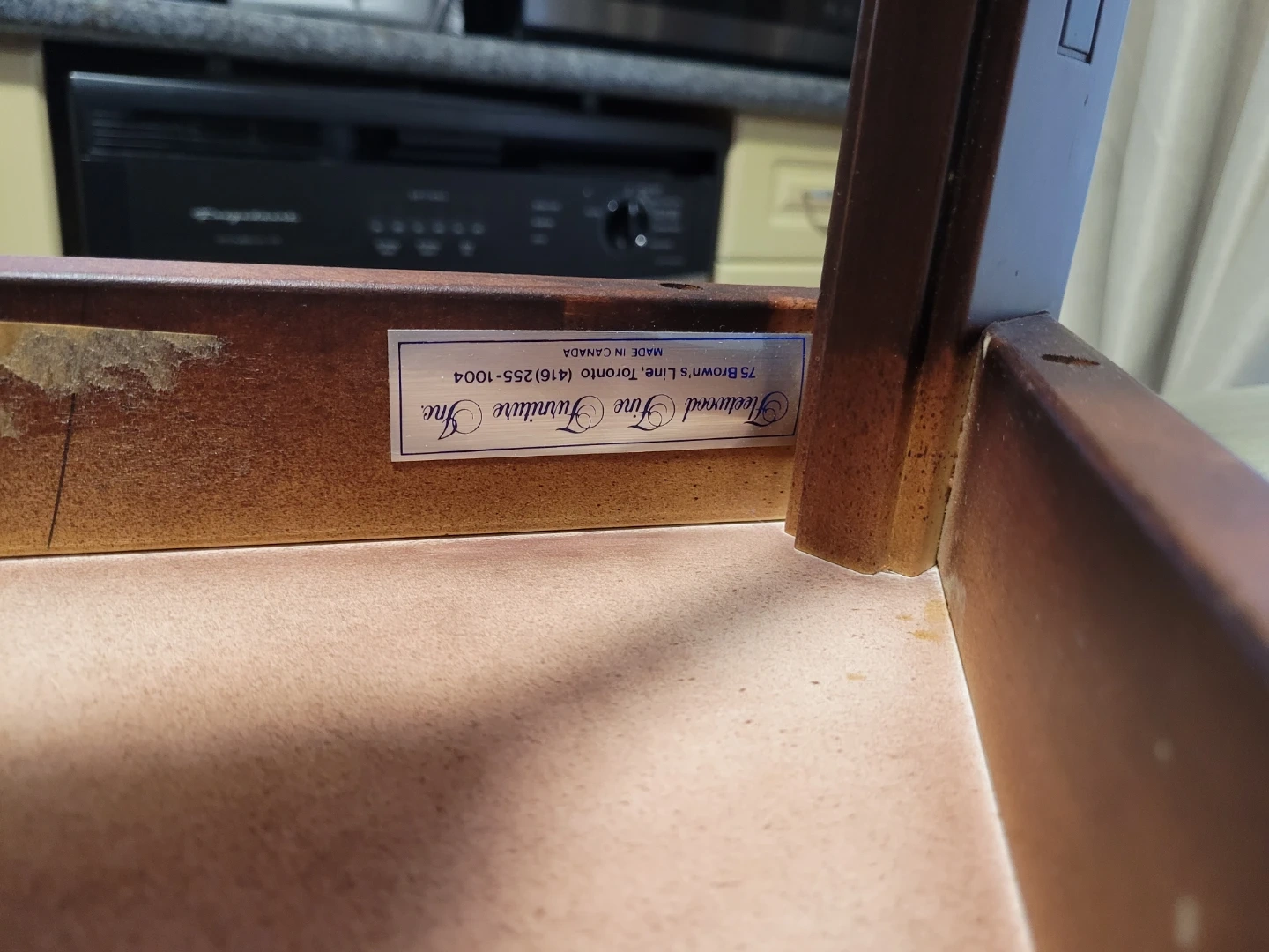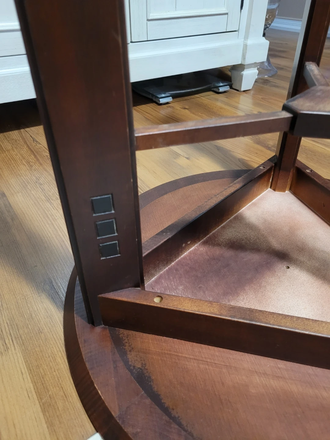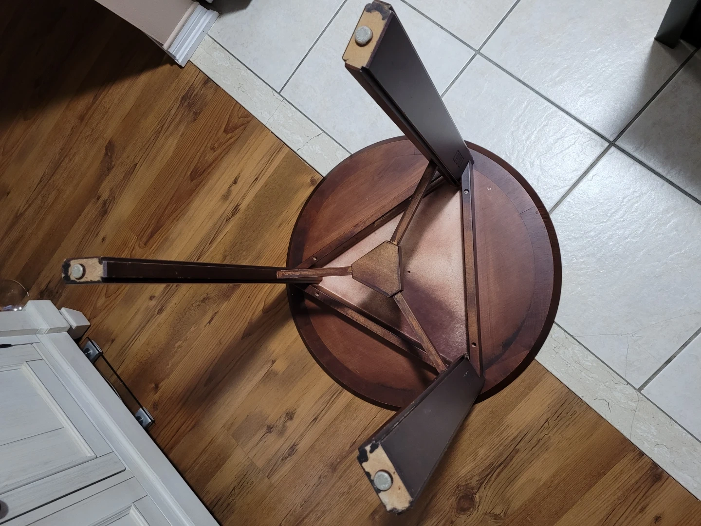 Selling a round table from Textured Fine Furniture Inc. It's a lovely piece made in Canada. The table has a rich, dark wood finish that would complement any room. It's a sturdy table, perfect for a small space or as an accent piece