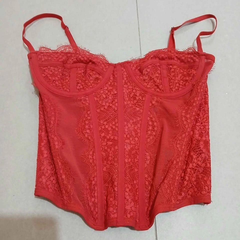 Red Lace Corset Bustier Top Lingerie Valentines Day Bra