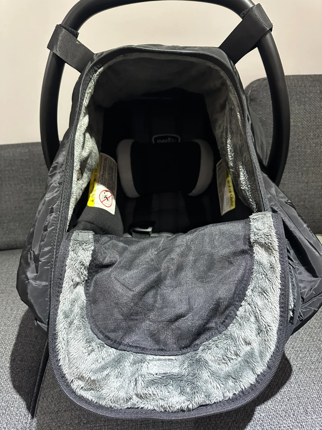 75Keep your little one cozy with this JJ Cole car seat cover! It's in great condition and perfect for keeping baby warm during those chilly Canadian months. The cover is black and easily attaches to most car seats.