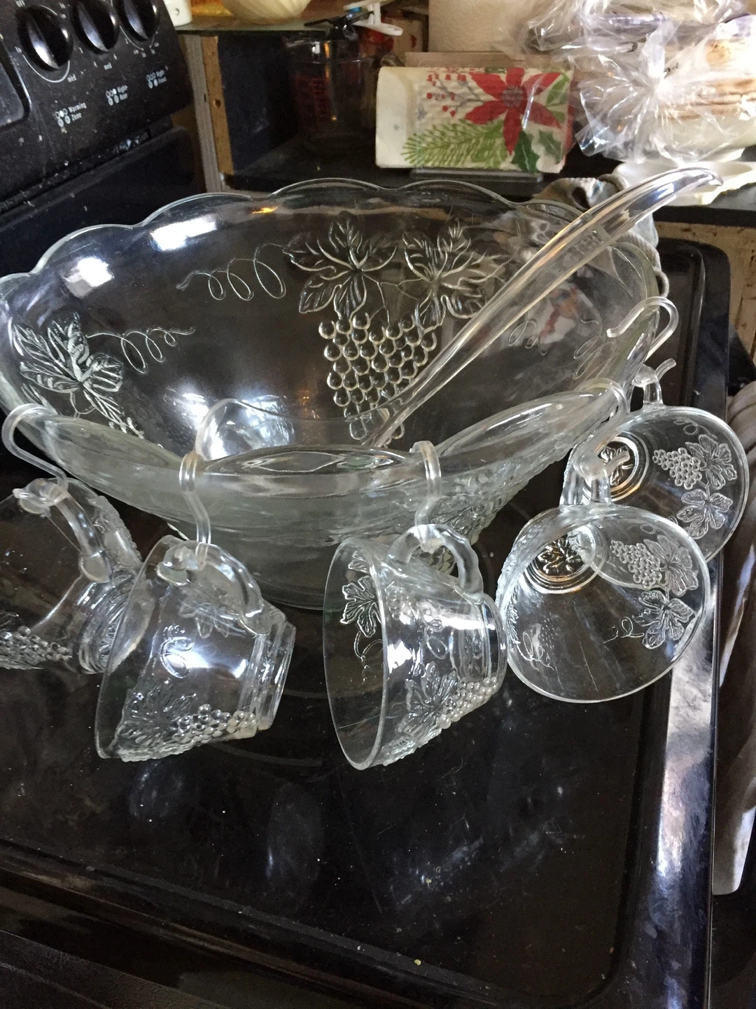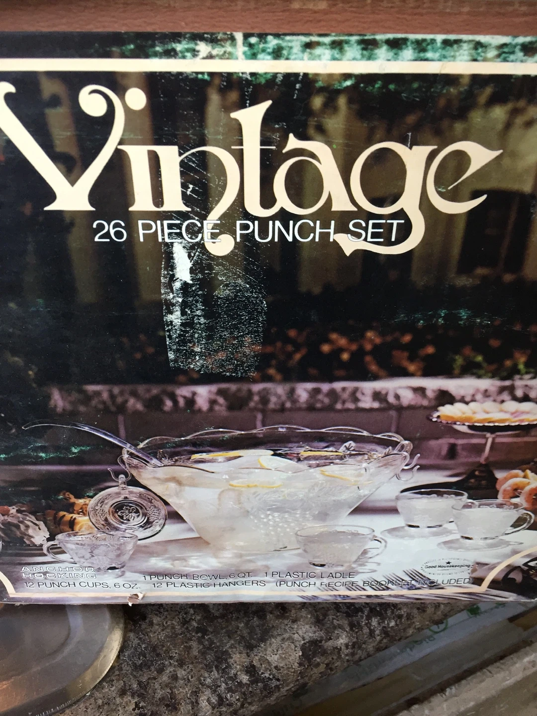 Selling a vintage 26-piece punch set. It includes a punch bowl, ladle, 12 punch cups (6 oz), and 12 plastic hangers. Perfect for parties and gatherings!