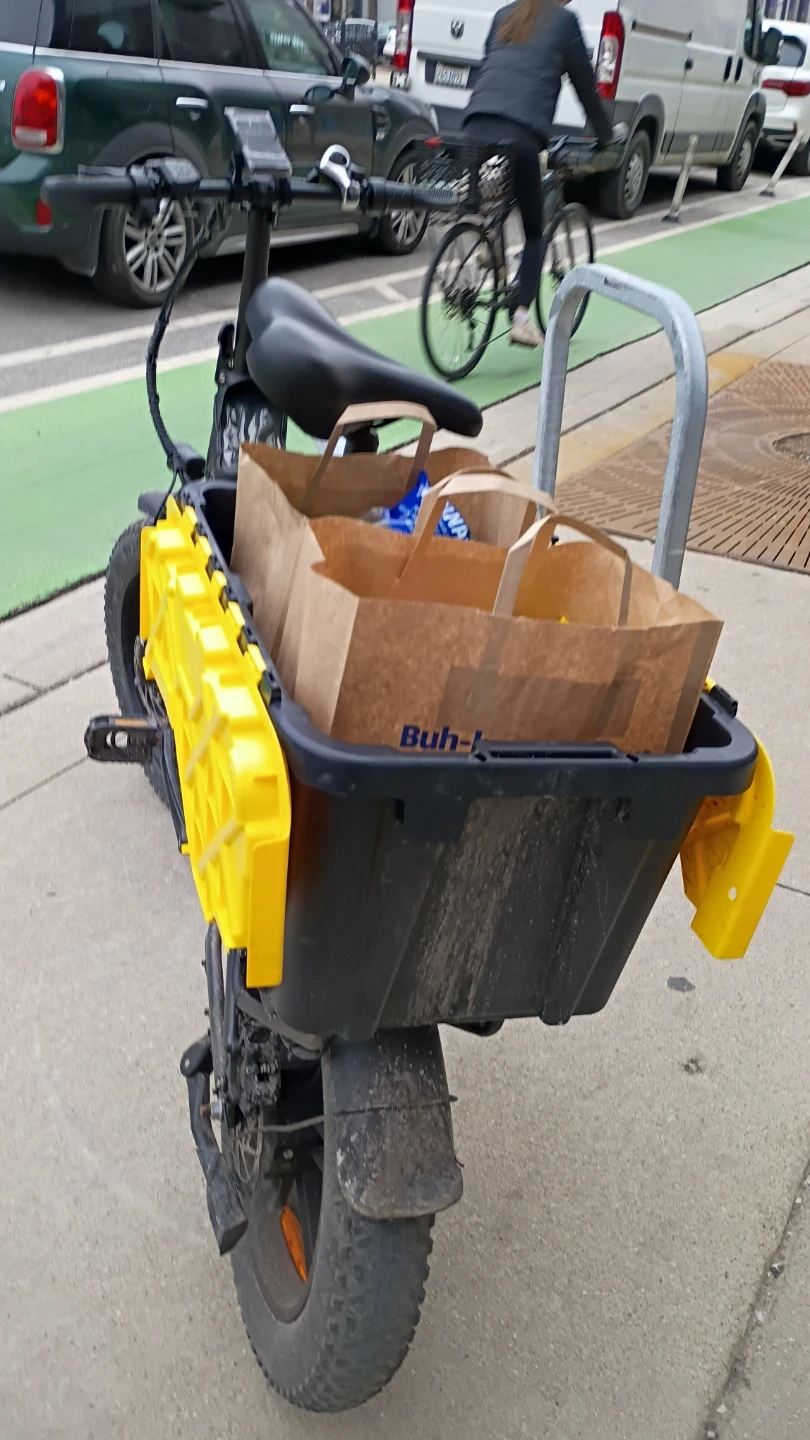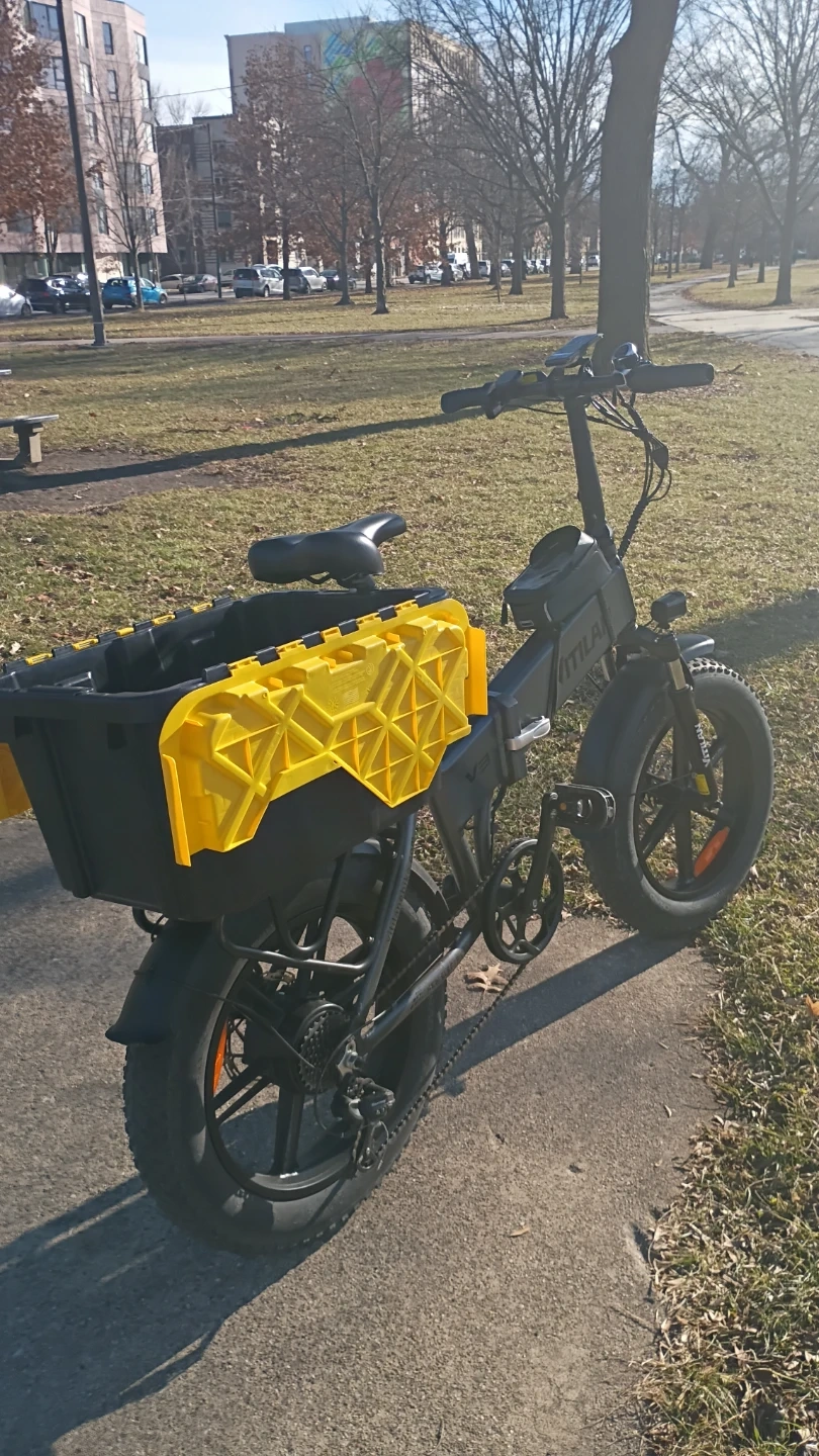 This VOTILAN V3 is an electric folding fat tire bike. It's equipped with a large rear cargo basket, perfect for hauling groceries or gear! The fat tires provide excellent traction and a smooth ride on various terrains.