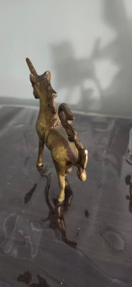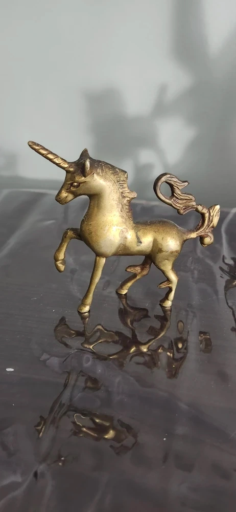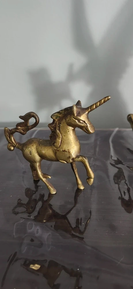 Selling this charming vintage solid brass unicorn figurine! 6"H-5"W It's a lovely piece with a nice golden colour and detailed features. It measures approximately 5 inches in height. It would make a great addition to any collection or a cute decorative item for your home. price not negotiable firm only cash only pickup no delivery 801 O'Connor drive East York outside TD Canada Trust bank door.